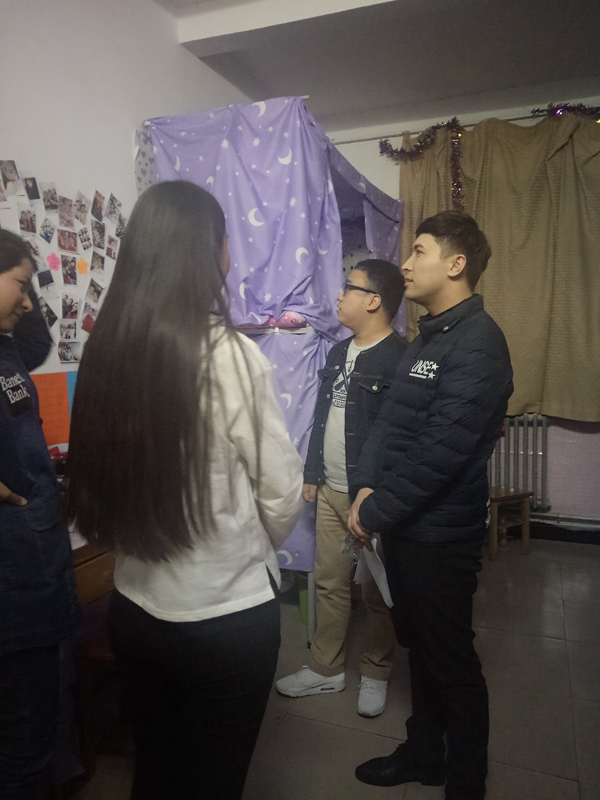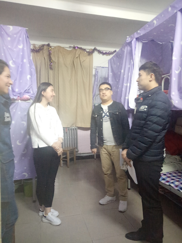 检查组深入学生宿舍,全面了解了宿舍成员的基本情况、宿舍卫生和安全问题,重点检查了宿舍违章电器使用情况等容易引起安全隐患的问题。通过检查我院学生宿舍整体风貌良好,宿舍干净整洁,并未发现违章使用电器等情况。赵超老师与民族学生亲切交流,询问学生学习和生活情况,叮嘱学生有困难时及时向学院反映寻求帮助,并强调学生注意个人卫生、保持宿舍整洁干净、养成良好的生活学习习惯。辅导员热依木老师强调学生平时要多注意宿舍安全,不能使用大功率电器,要对自己负责、对同学负责、对家人负责。