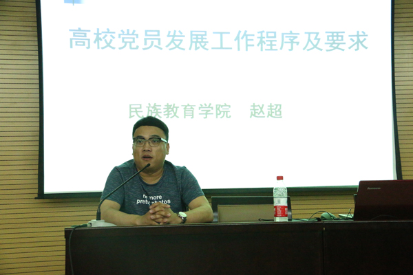 团总支书记赵超老师为参加此次党课培训的68名入党积极分子做了题为“高校党员发展工作程序及要求”的报告。