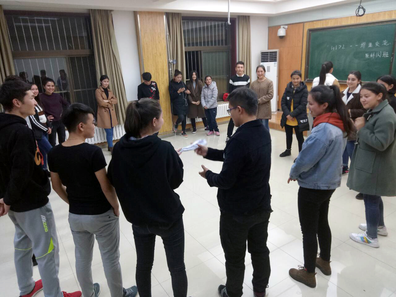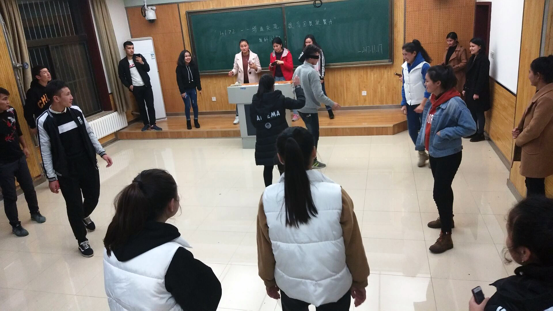 2017级两年制预科六班,在教学5楼5305教室开展了以“1+1>2—增进交流,提高班级凝聚力”为主题的团体心理辅导活动。活动由六班心理委员指导,各班委组织实施,全班同学共同参与。