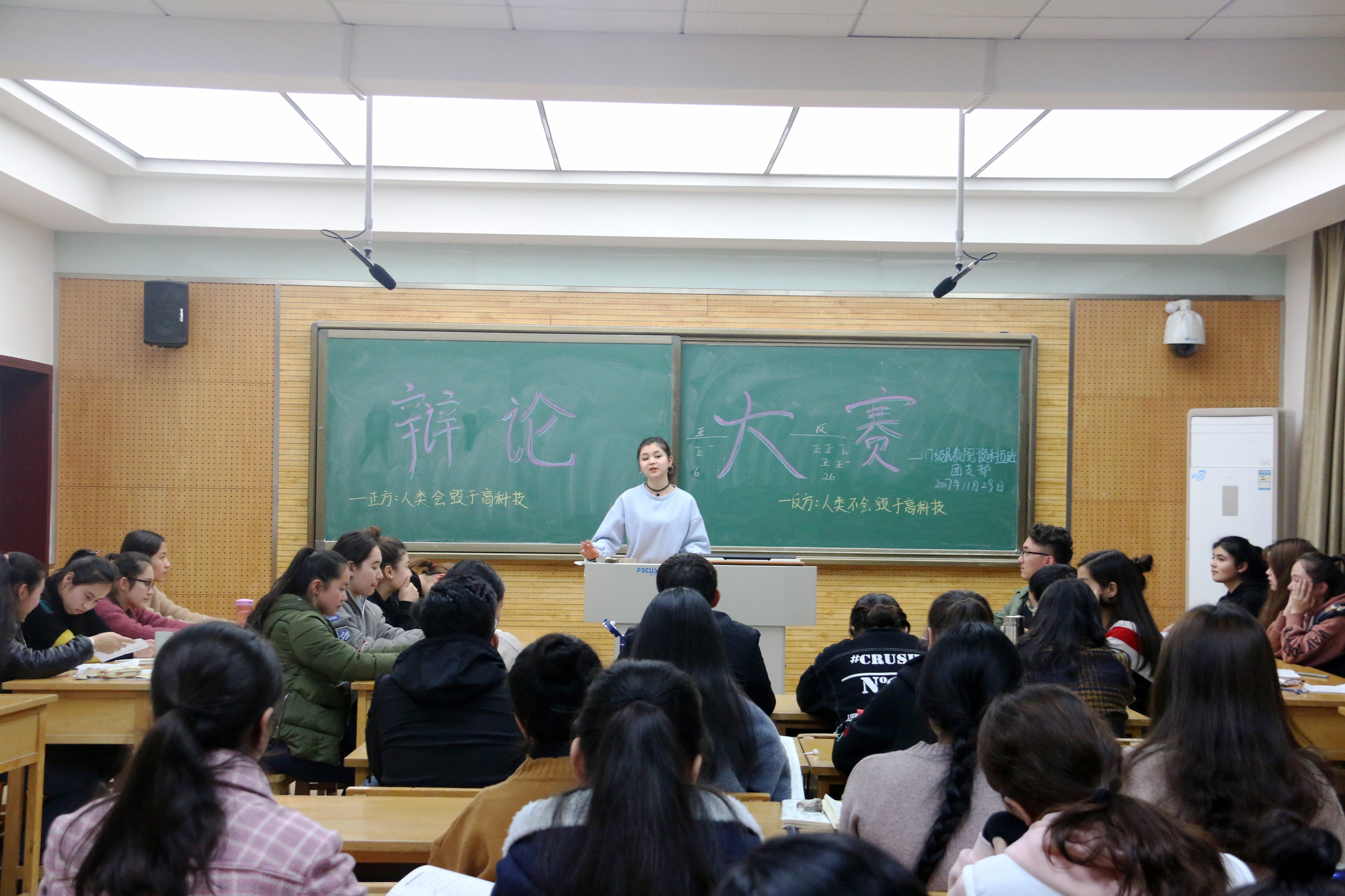 2017级预科五班打破常规,以辩论赛的形式展开了一次精彩的团日活动。我院专职辅导员热依木老师和全班同学参加了本次活动。活动由我班团支书凯蒂亚·艾麦江同学全程主持。