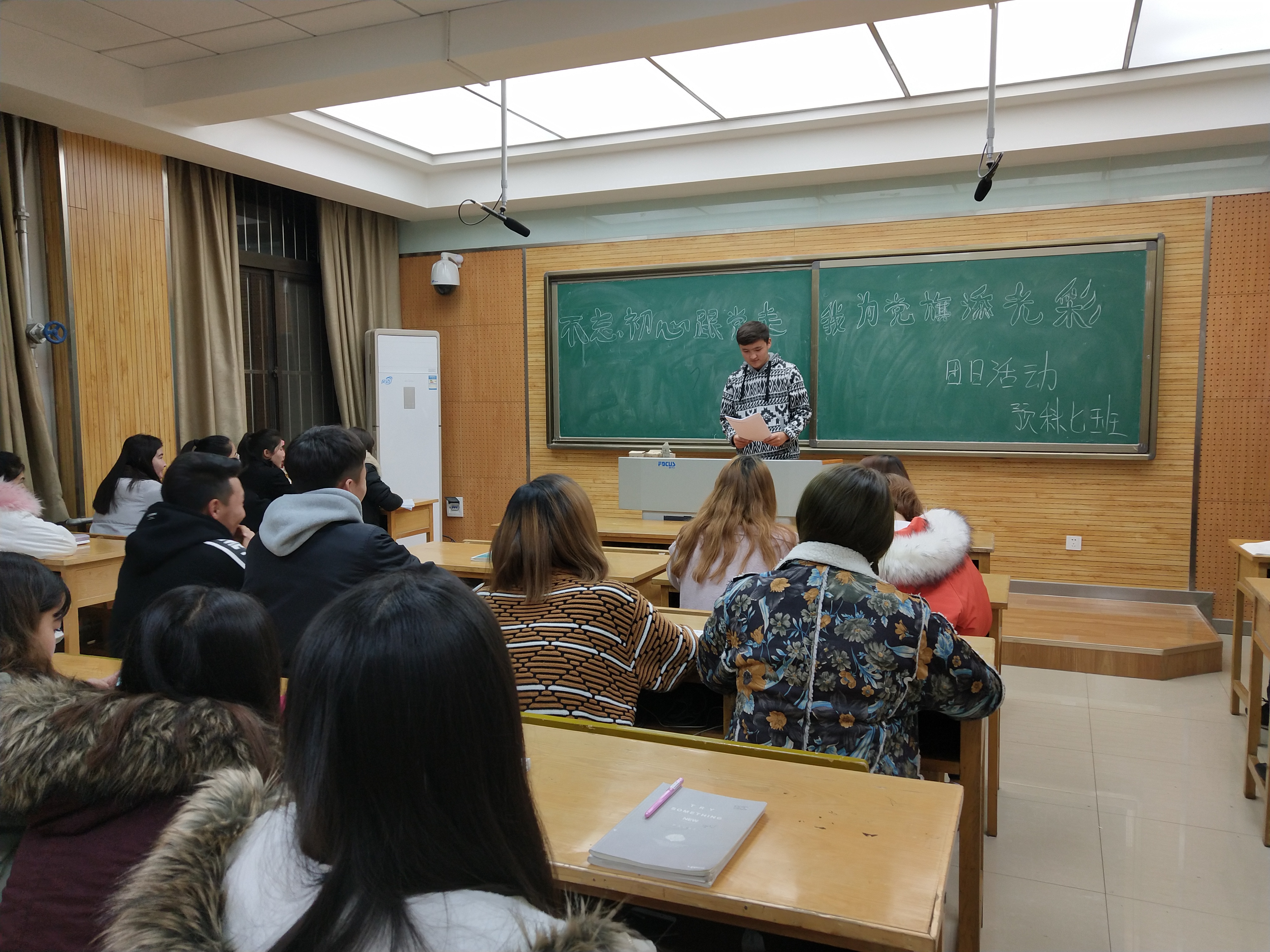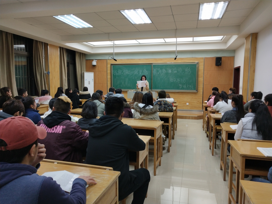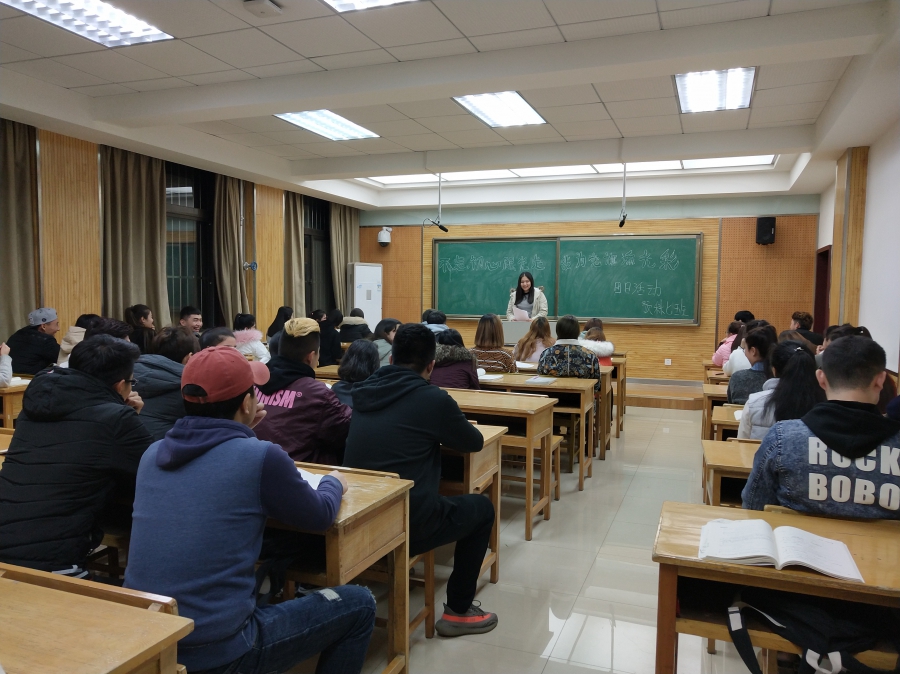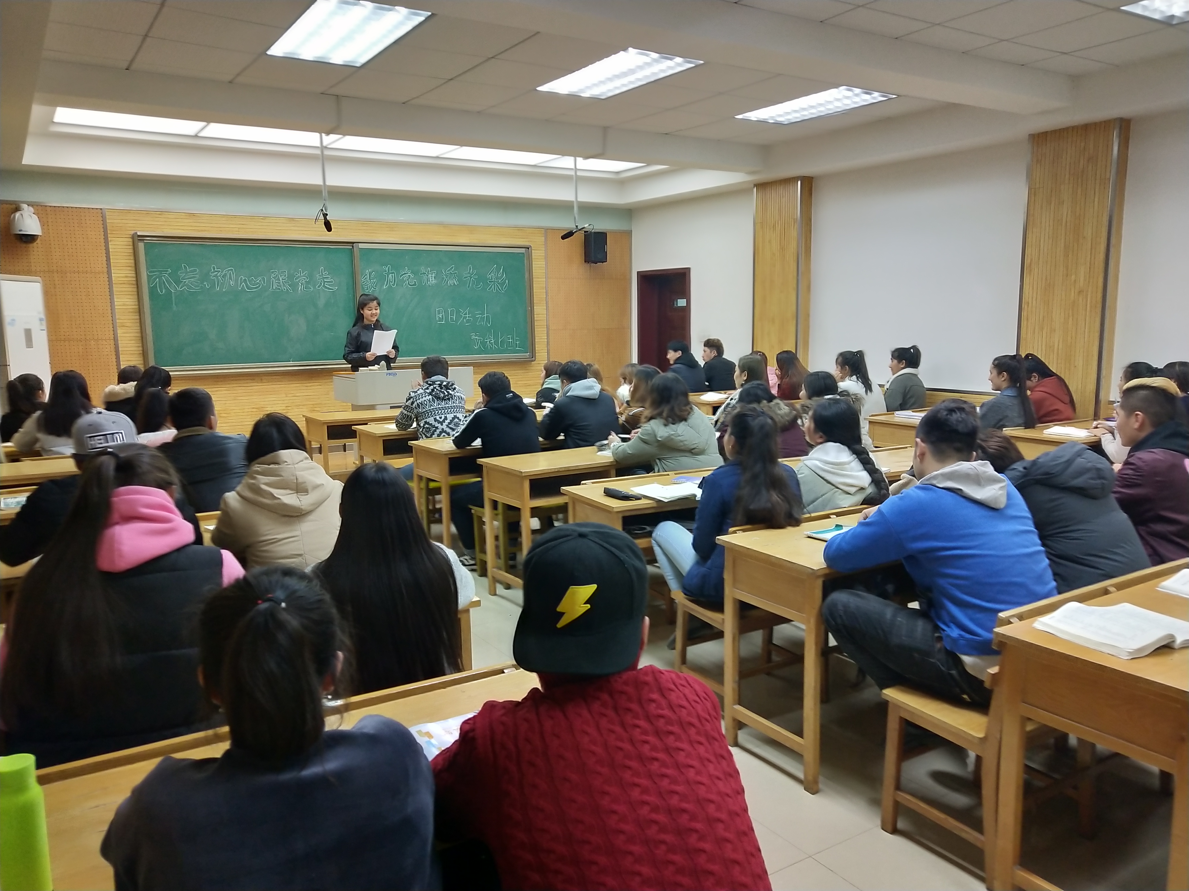 为深入学习、贯彻和落实党的十九大会议精神,加强对学生的思想政治教育,引导学生认识肩负的责任和使命,树立社会主义核心价值观,11月29日,我院2016级两年制预科班学生组织开展以“不忘初心跟党走、我为党旗添光彩”为主题的团日活动。