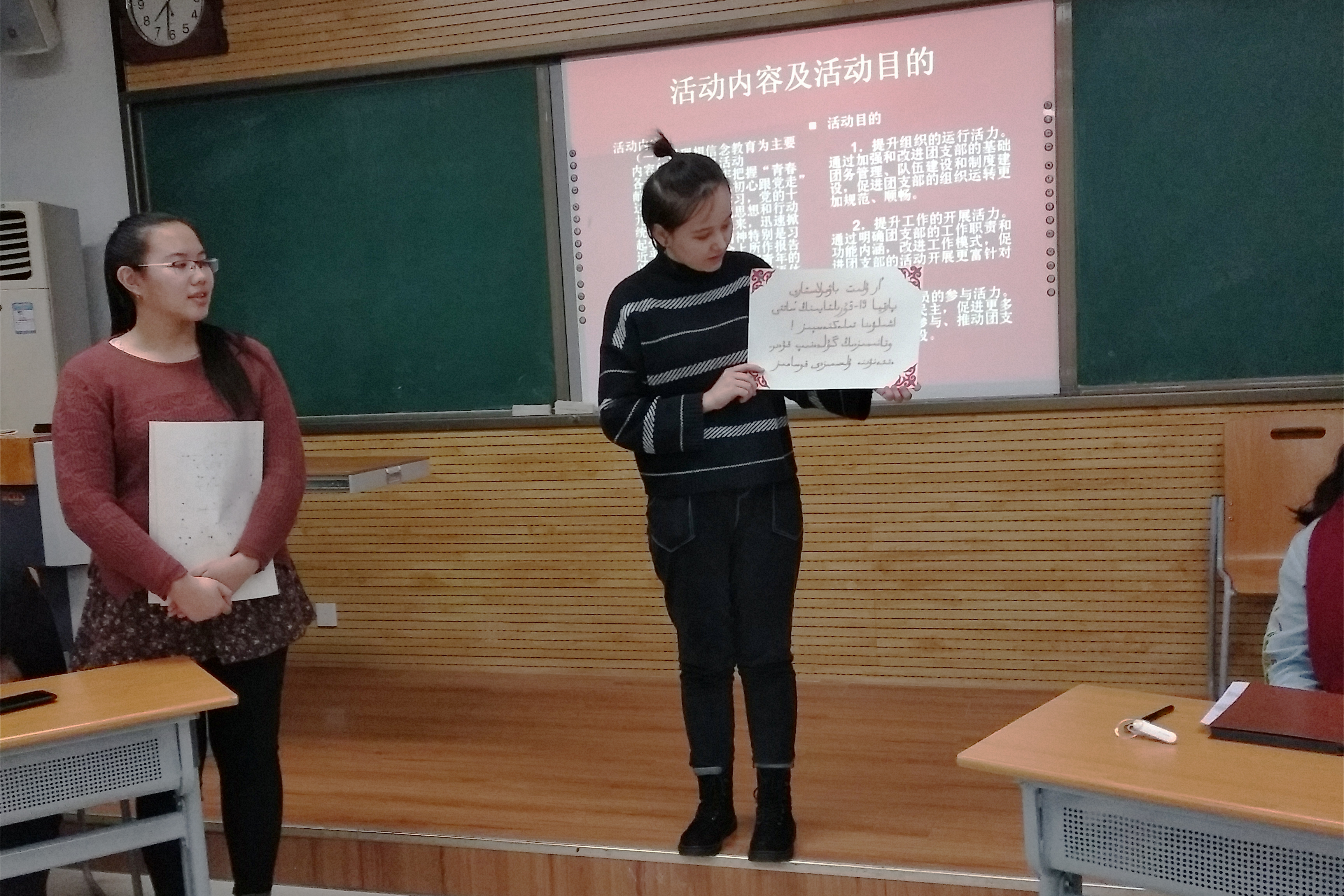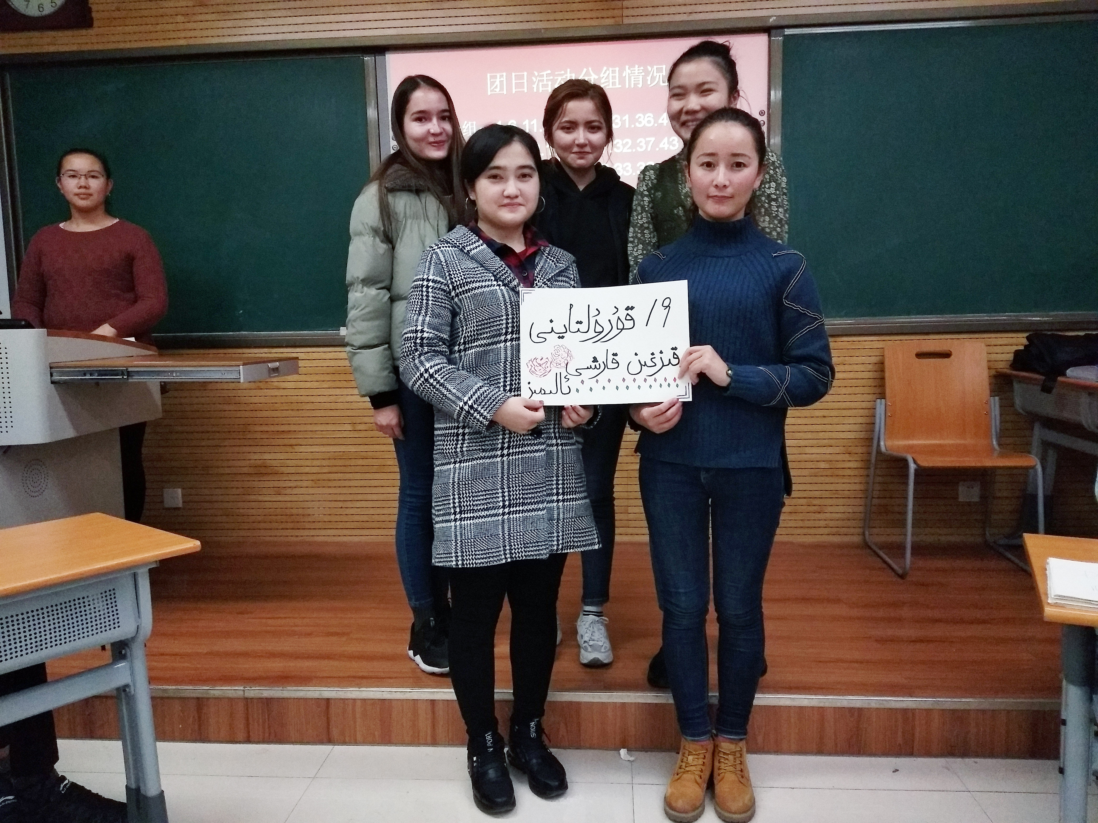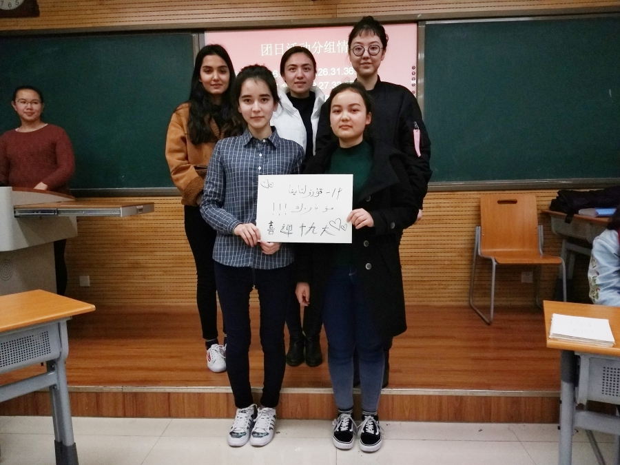 主持人在展开主题活动前,给预科三班的同学们播放了有关“各少数民族对十九大胜利召开的寄语”介绍了本次活动主题内容以及活动目的;带领全体同学,进行了“民族语言画报”展示,这一活动着重体现了兔子先生