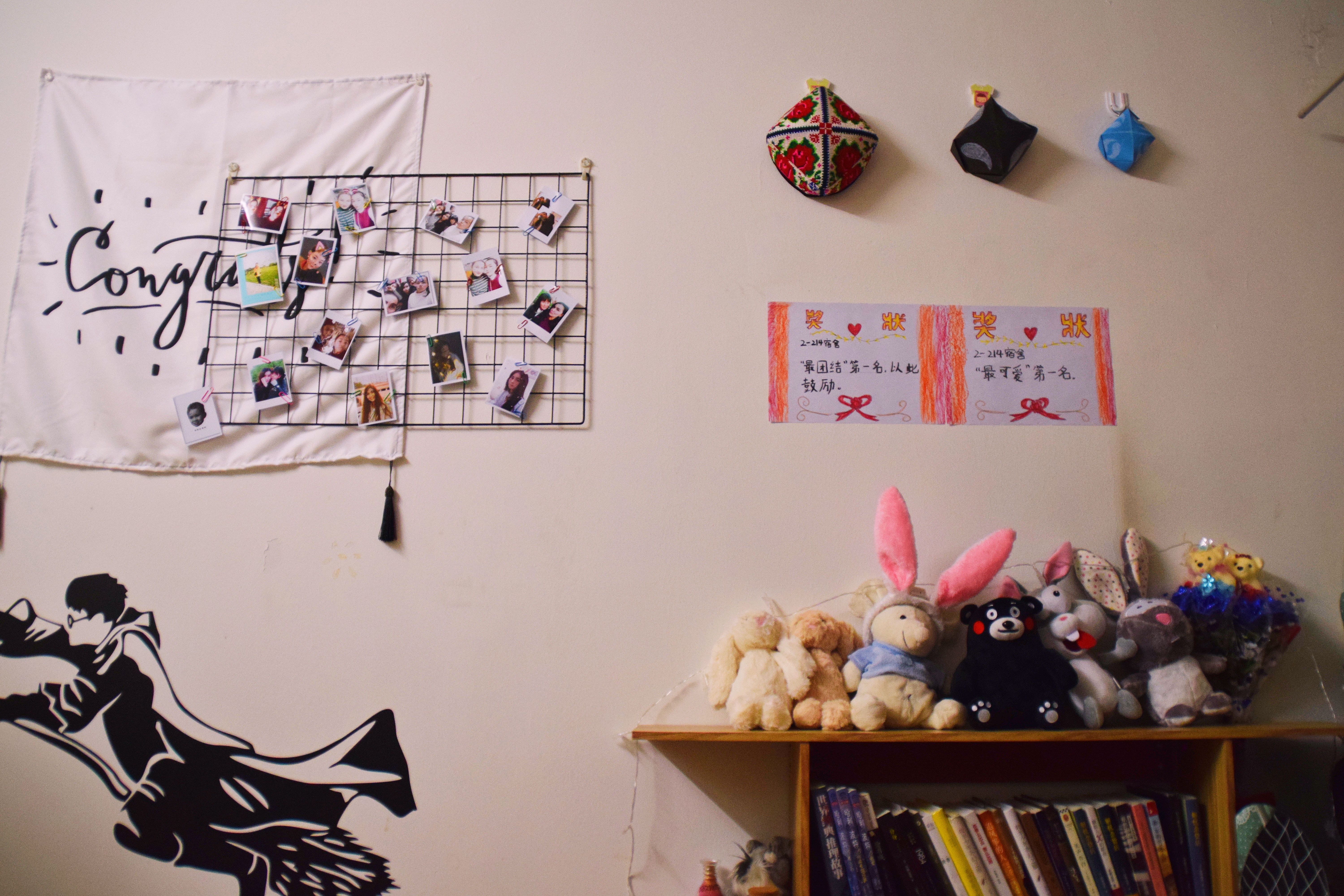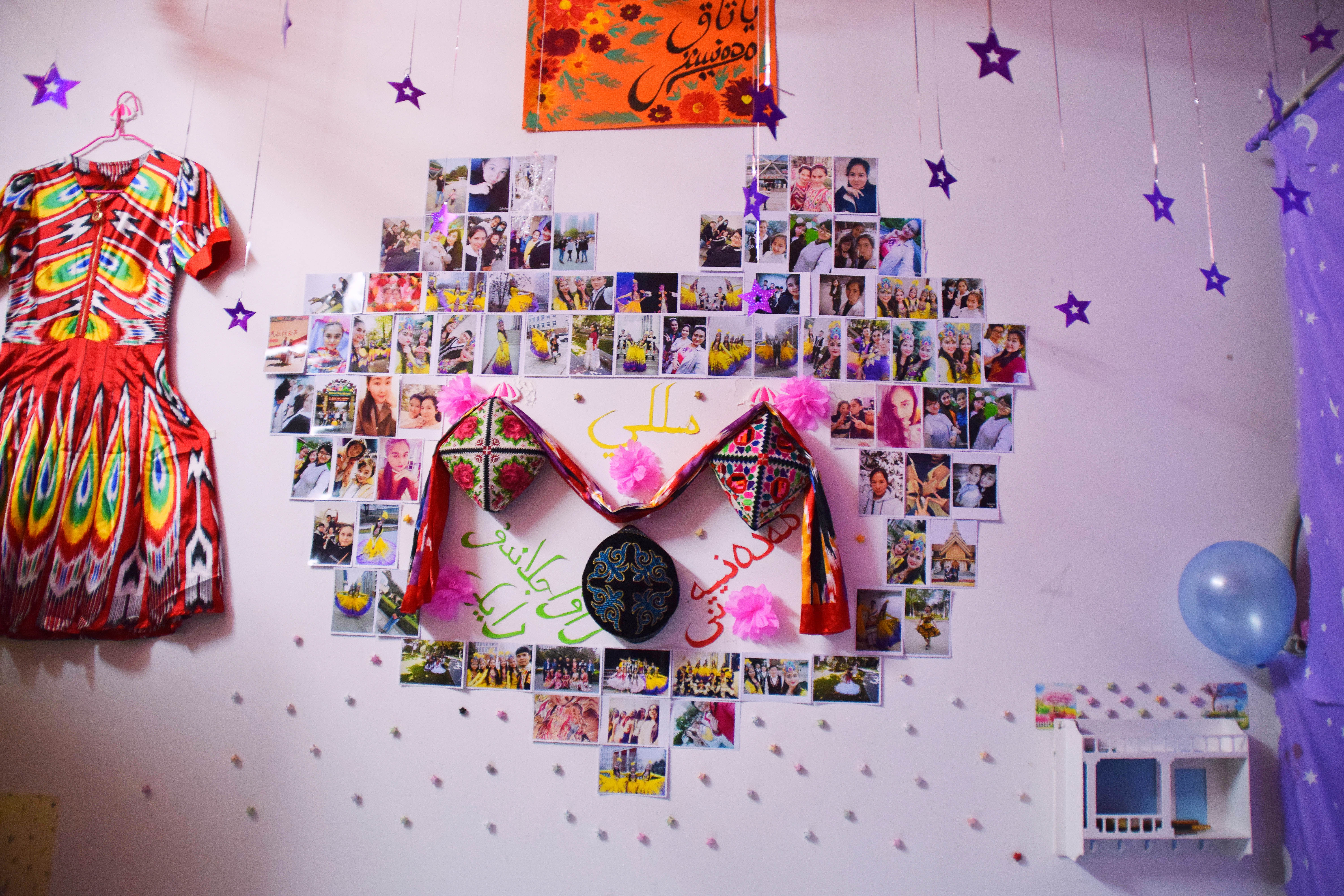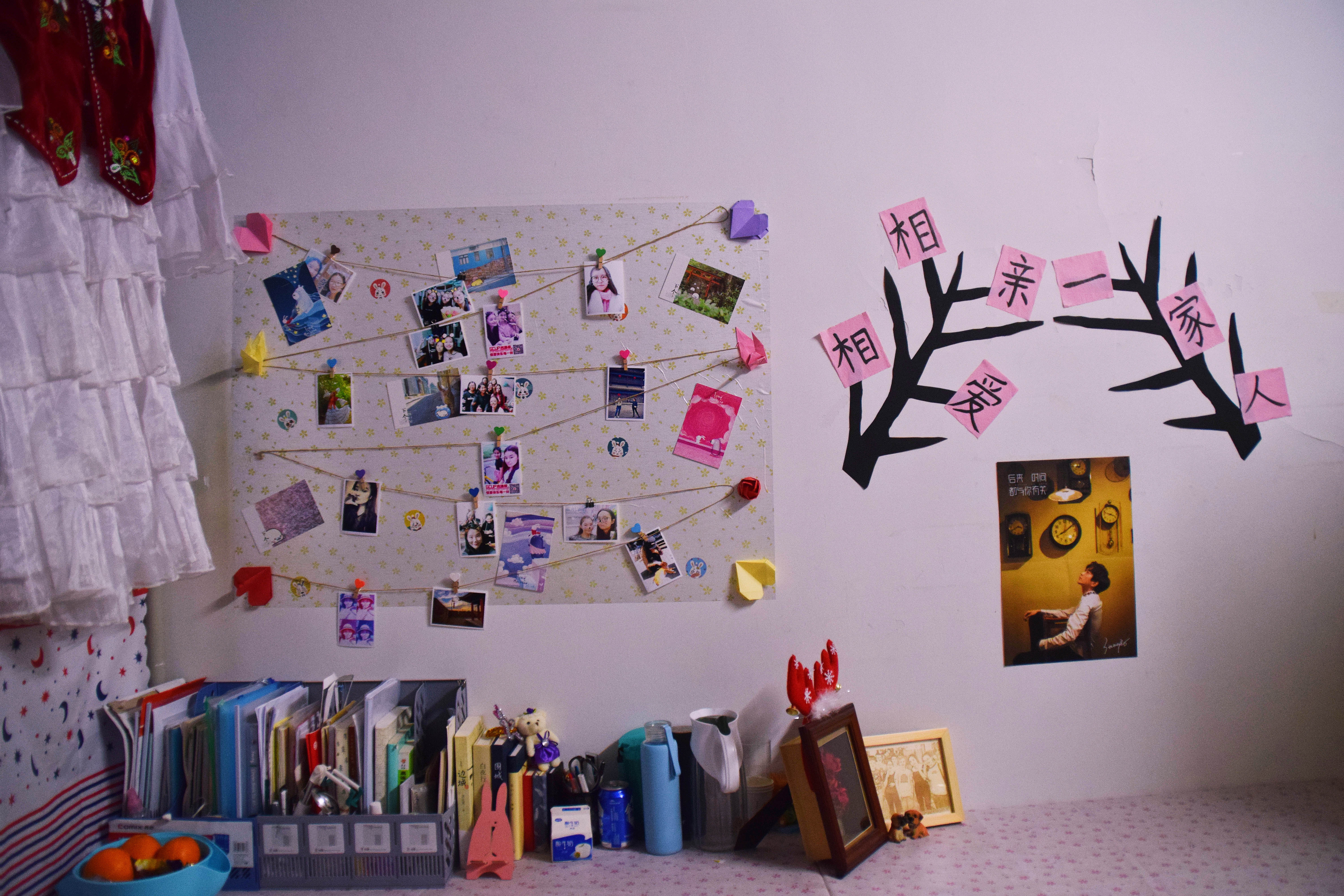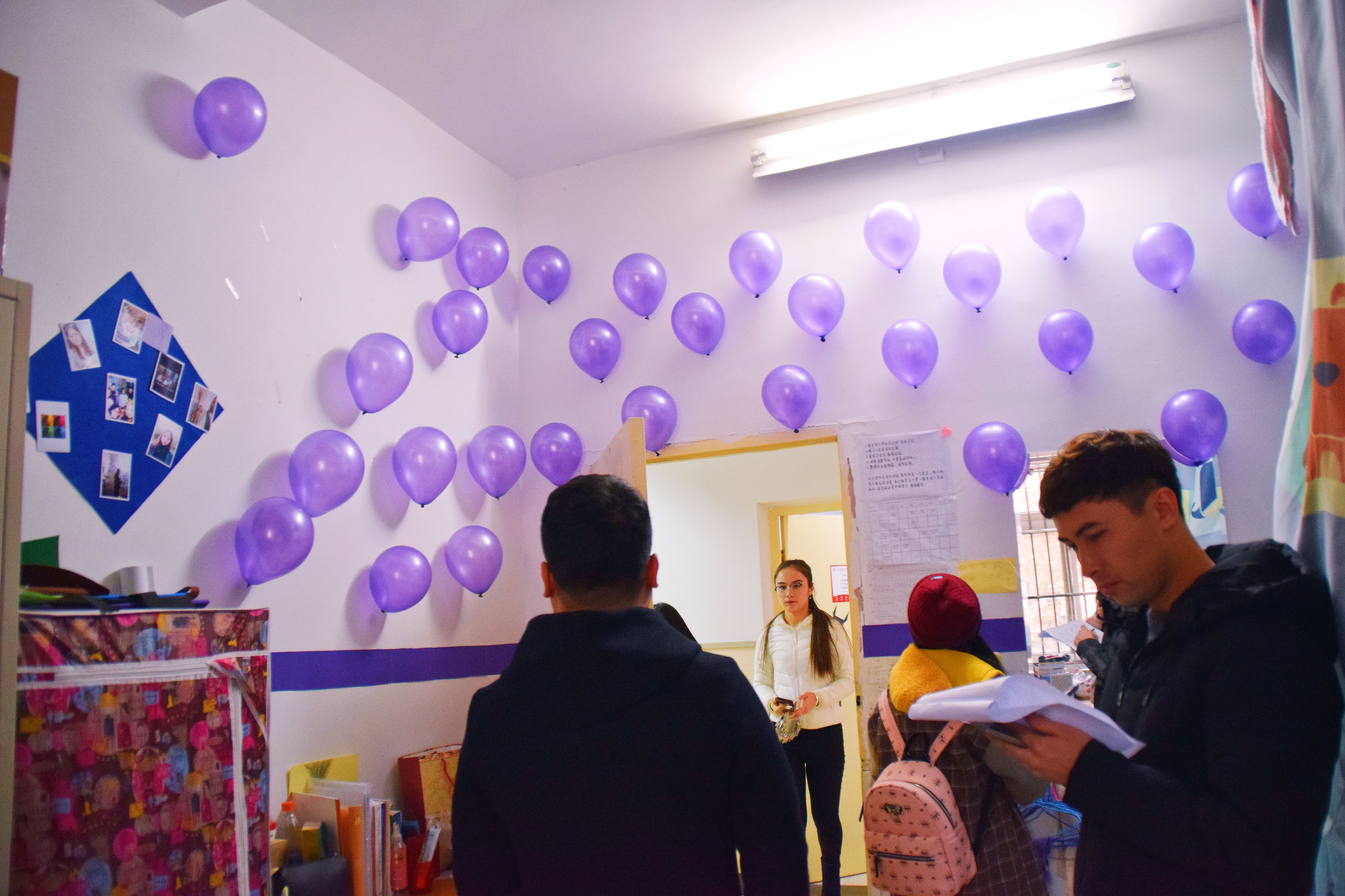 12月25日下午3点,宿舍文化节的评比活动正式开始。老师们及生活部干部先后走访参观了男生4-5号学生宿舍楼和2-3号女生宿舍楼。一进楼道,便能看见走廊上的相框里有学生们青春洋溢的笑脸,一望到小粉楼2栋三楼的走廊尽头,色彩艳丽的民族卡通画象扑入眼帘,那些别出心裁的宿舍主题风格和装扮创意更是令人眼前一亮,这些无一不显示出宿舍文化节浓厚的气氛。还有的宿舍墙上挂着的艾德莱斯绸,铺着民族风花纹桌布的桌子上摆放的馕,墙面上挂着的马头琴,都将民族文化融入生活之中。一些宿舍里挂着同学们手绘的人像画,精美的手工叠纸,得到了各位参审评委老师们的一致称赞。在参观过程中,老师们不仅对同学们参与宿舍文化节的热情表示肯定,同时对大家在宿舍评比中发现的问题提出了指导性的建议。