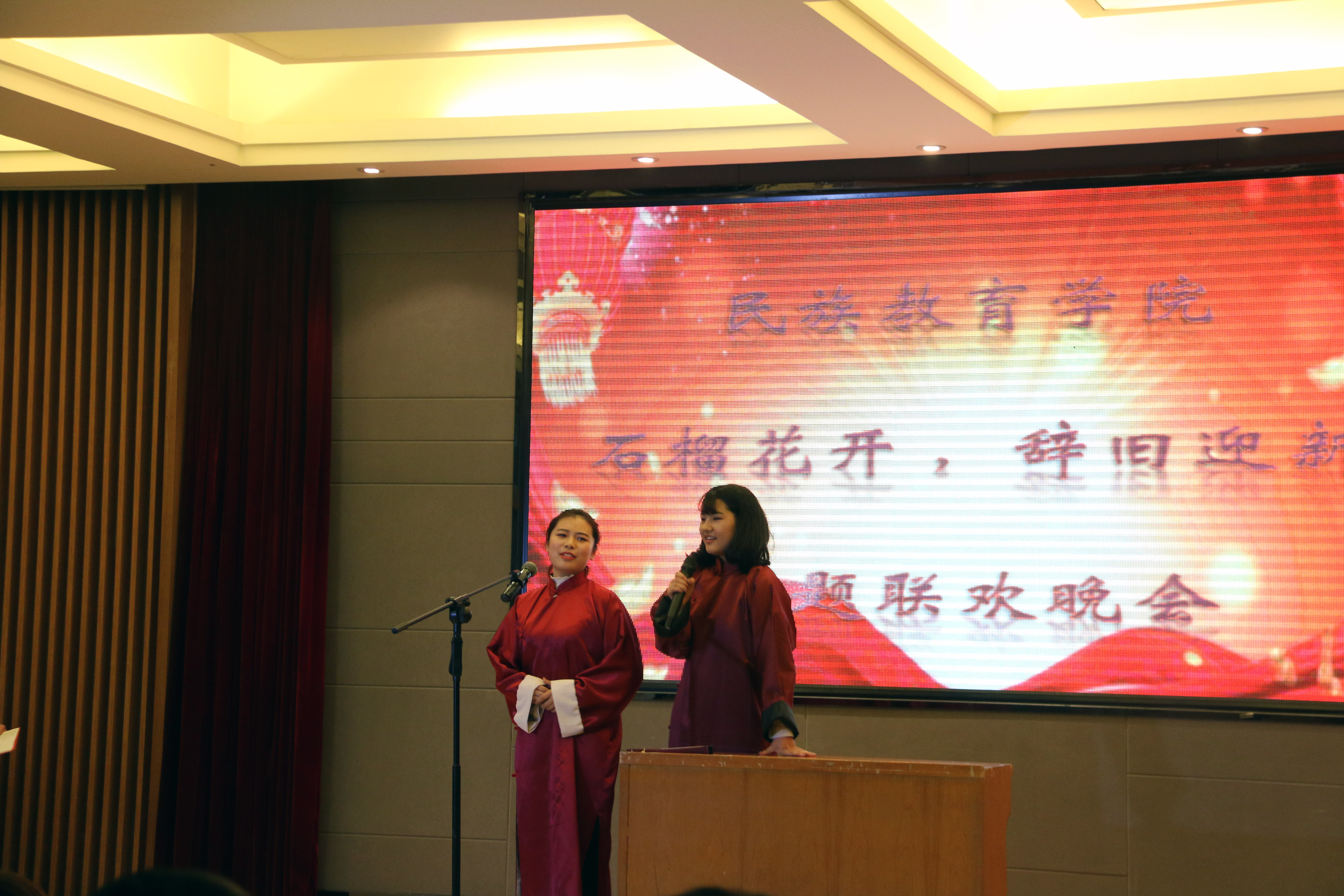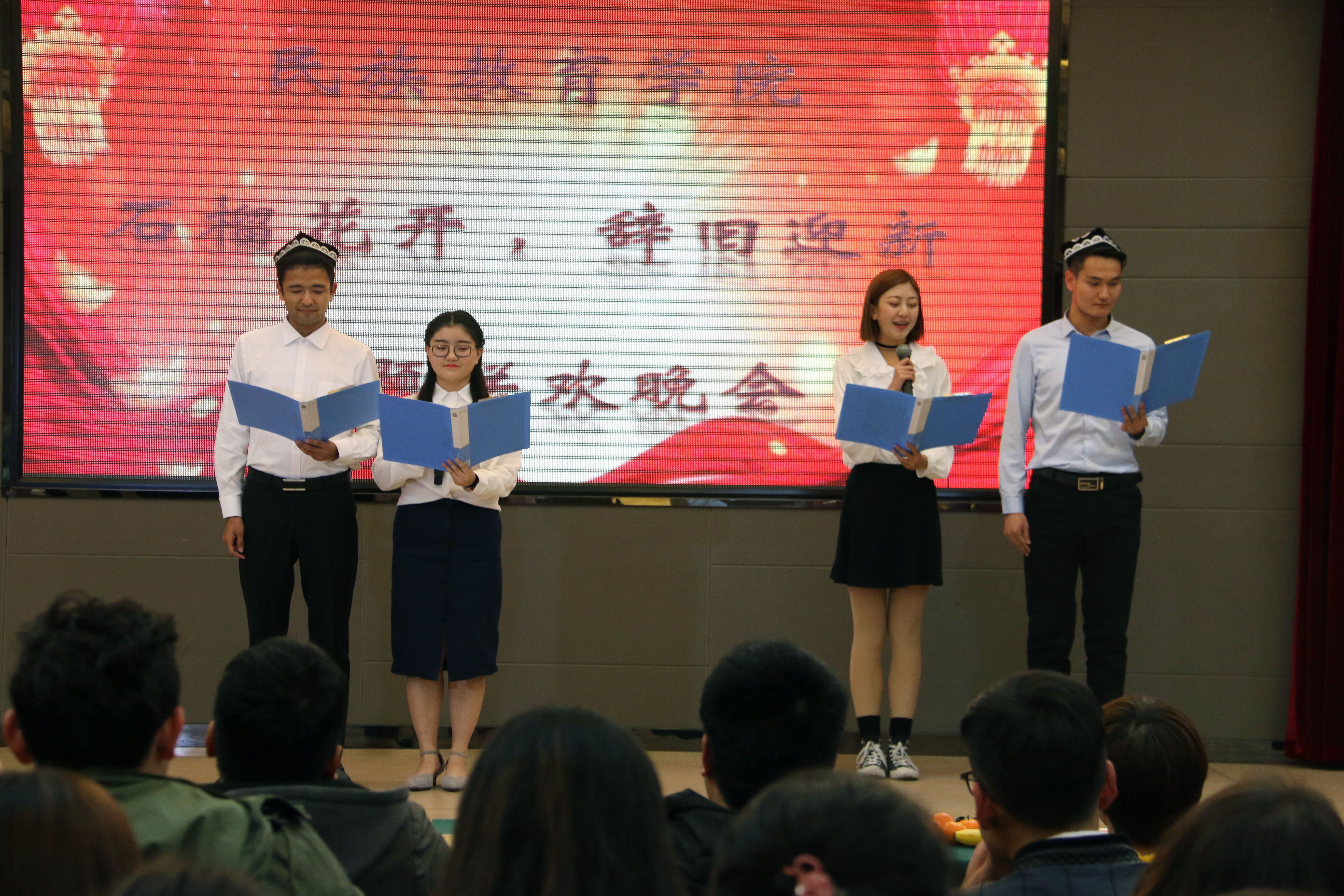 为迎接2017级新生暨迎2018新年的到来,展现我院莘莘学子的风采。12月29日晚,由我院学生会主办,以“石榴花开,辞旧迎新”为主题的迎新晚会在我校雁塔区启夏苑二楼多功能厅拉开帷幕。我院党总支副书记、行政副院长窦文阳、团总支书记赵超、专职辅导员热依木、兼职导员张蕾、高凤荣、白玉雯共同出席了此次晚会。