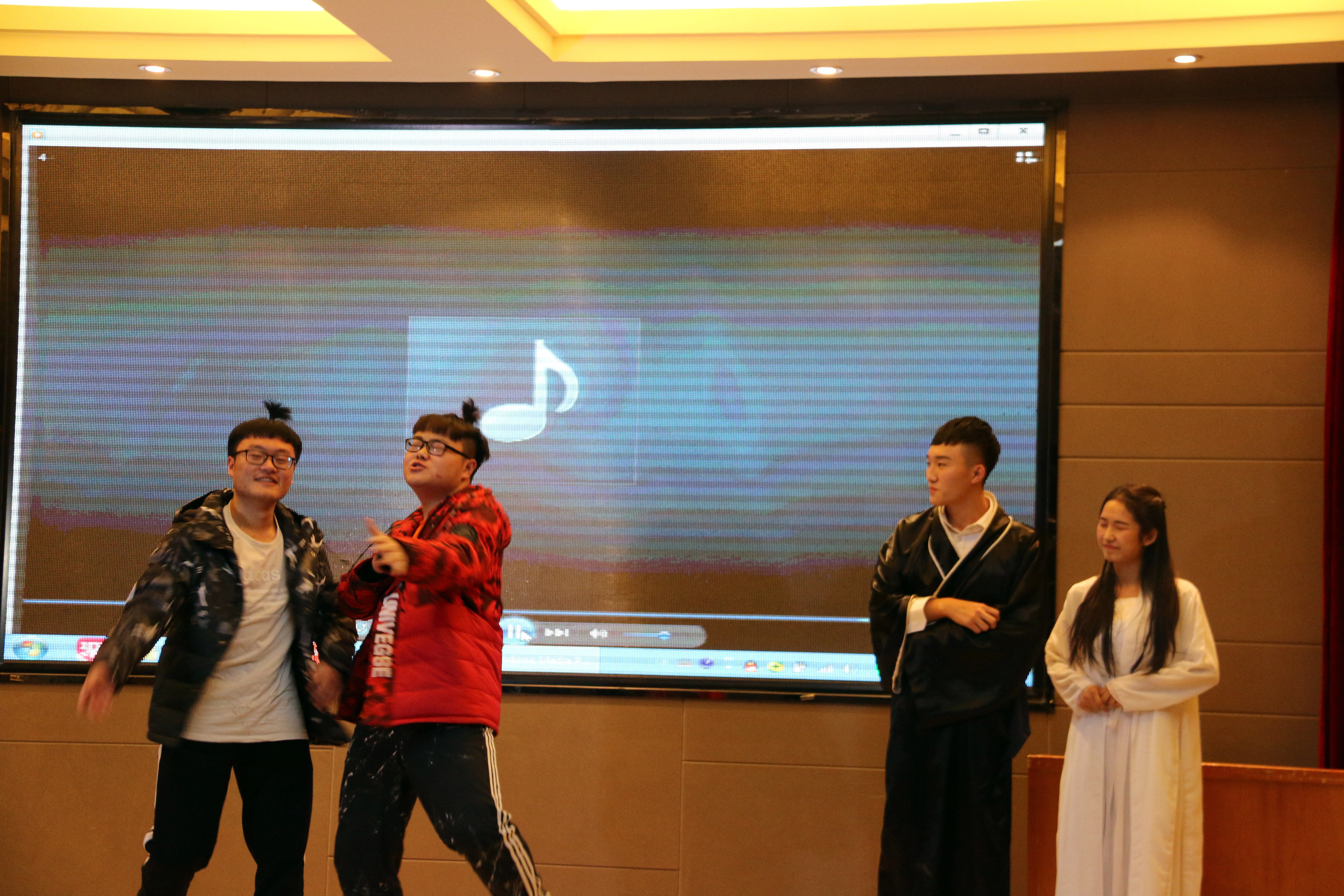 期间还举行游戏环节,“你画我猜”、“抢凳子”等游戏让大家彼此分享快乐的心情;宅舞《流星群》用欢快的节奏承接热烈的气氛;舞台剧《芳华凯哥》拉我们回到过去,浸身在过去的高中年华里;小品《三打白骨精》让现场笑声连连;《歌曲串烧》让杯子发出音乐声附和着少女们的歌声,让观众陶醉于其中;《说唱街舞串烧》带来酷酷的炫风,让年轻得以张扬。至此,一连串精彩的节目告一段落,联欢会在主持人的致辞中圆满结束!