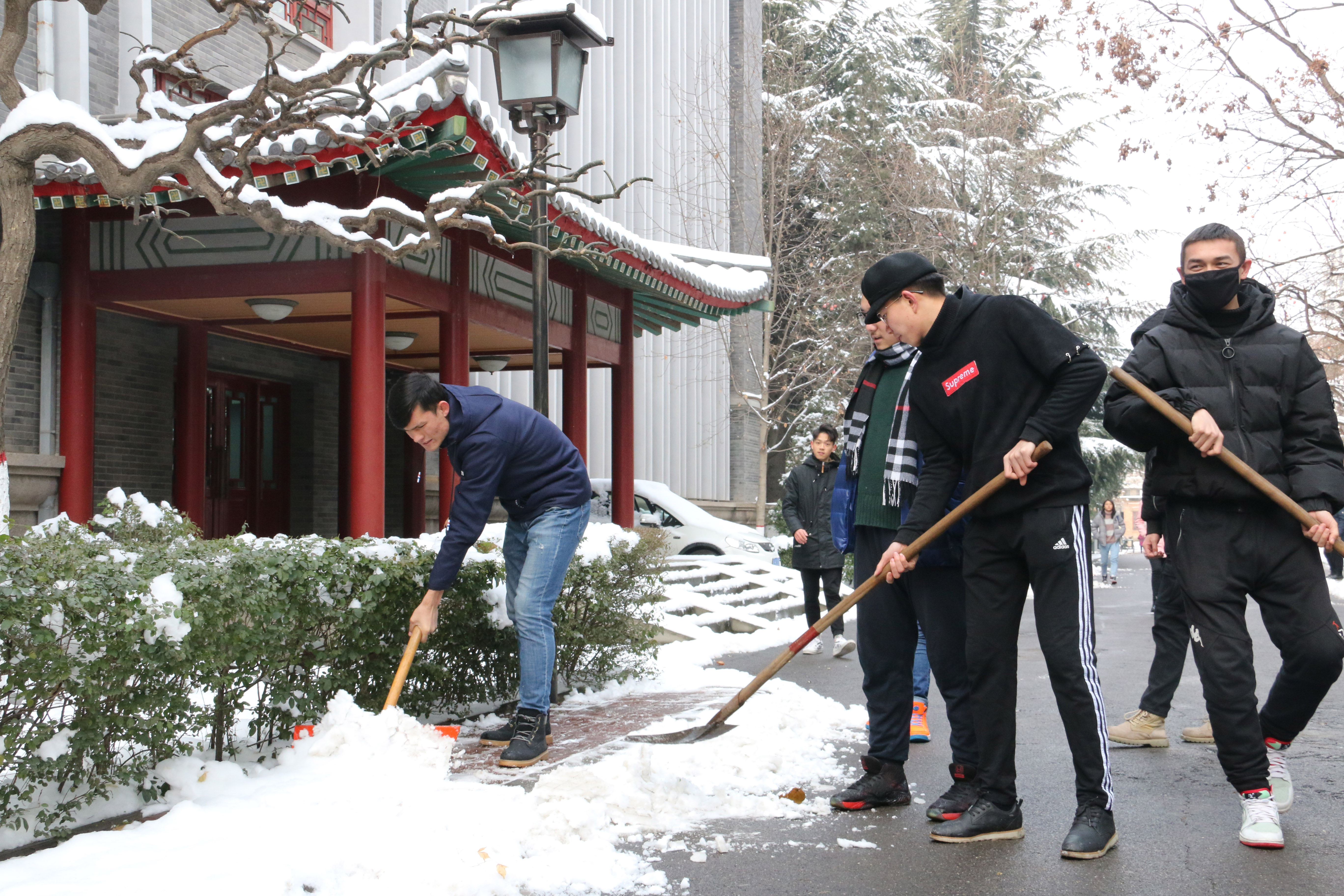 我院从后勤服务处物业科借来了扫雪用的铁锹、扫帚等工具,同学们不畏严寒,积极参与,相互配合,有的同学负责扫雪,有的同学负责铲冰,大家干得热火朝天,忙碌的身影构成了一道亮丽的风景线。虽然室外温度很低,但大家劳动的热情和团结协作的场面让这个冬日变得格外温暖。经过一个小时的奋战,六附楼周围和主干道的积雪全部铲除,原本满是冰雪的道路变得干净整洁,路面状况、通行能力得到明显改善,为广大师生提供了便利。