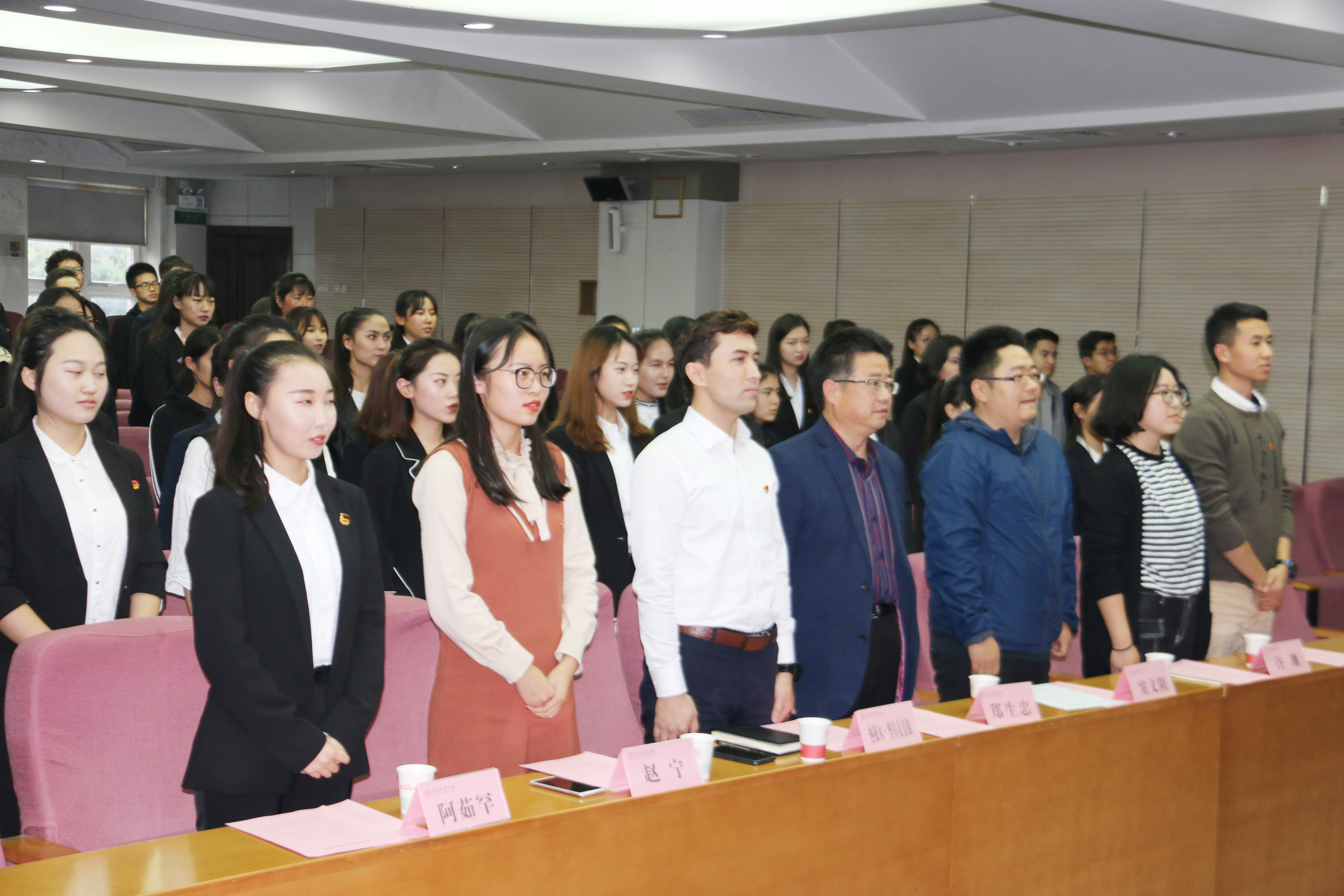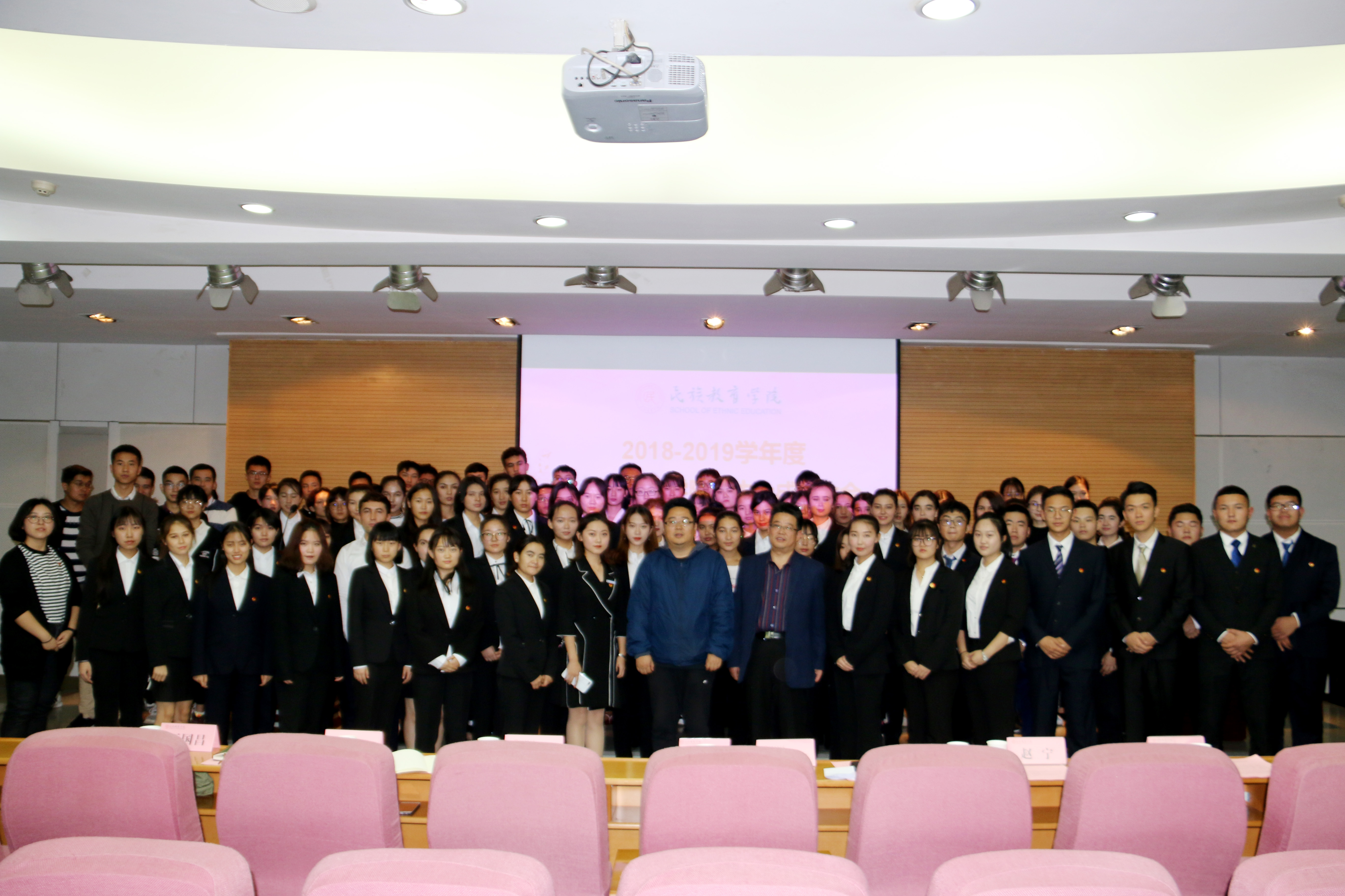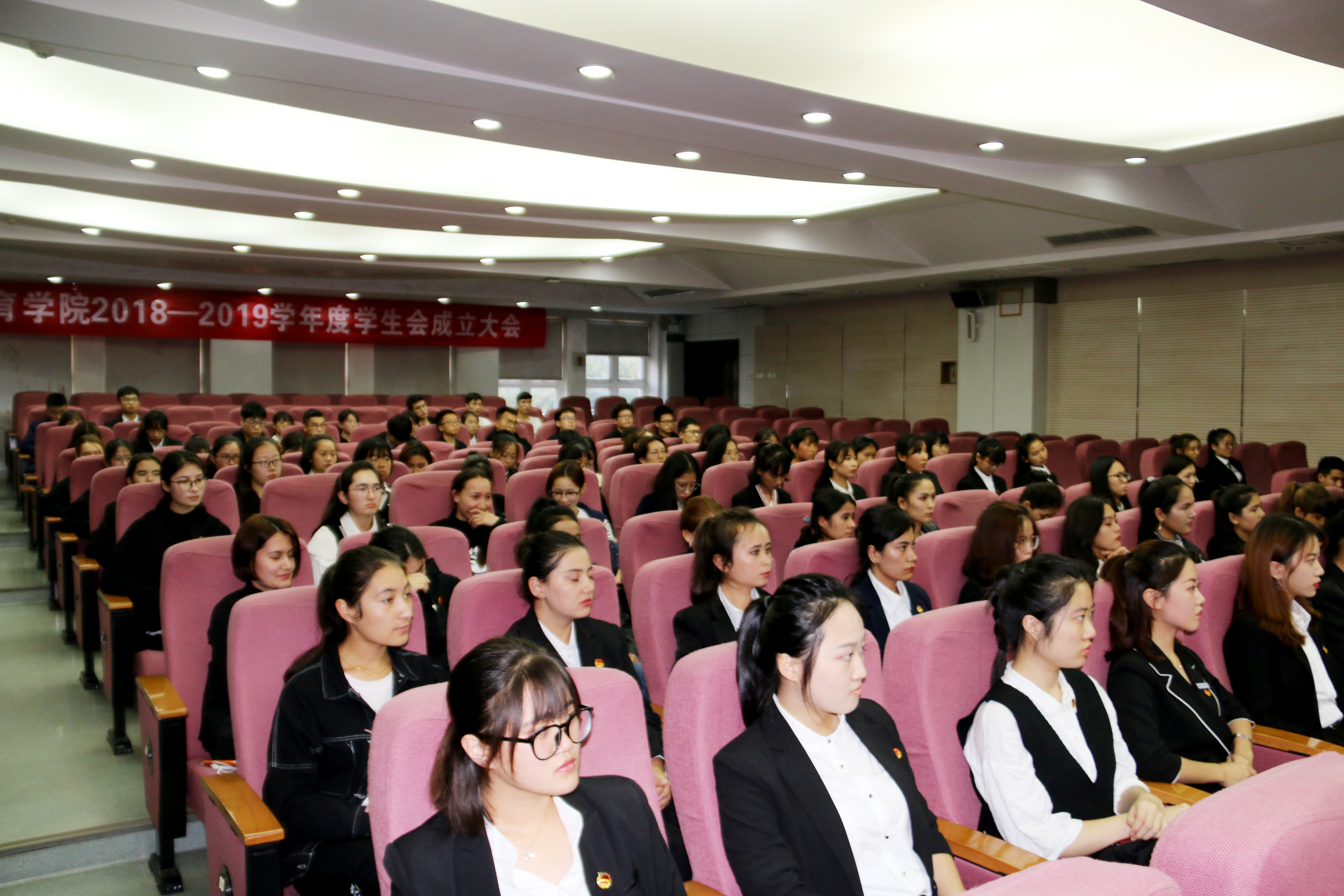 2018—2019学年度学生会换届大会在崇鋈楼三层归仁堂举行。参加本次大会的有我院党总支书记郑生忠,党总支副书记,副院长窦文阳,辅导员热依木以及兼职辅导员许珊,王国昌、上届学生会副主席赵宁、新一届学生会全体成员及各班班委。本次大会由预科二班邹粤龙同学主持。