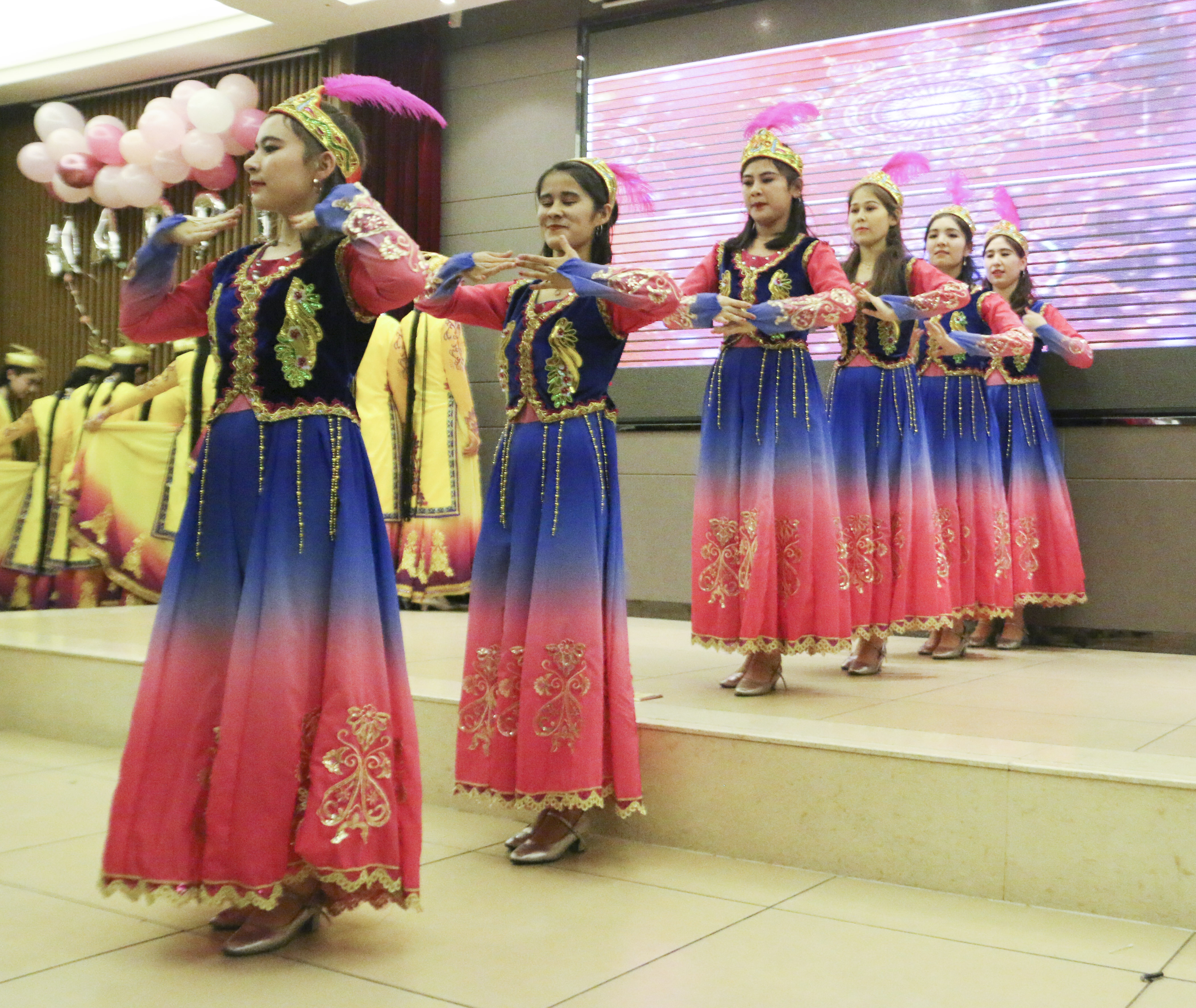 开场舞《我们最青春》为现场带来热烈了气氛,随之而来的吉他弹唱让大家回忆起了那些美好的岁月;朗诵节目表达出了新时代青年报效祖国的决心;两个小品深发了同学们对青春的思考;电台歌曲串烧让远在他乡的游子收到了一份来自家的温暖;哈萨克族与维吾尔族舞蹈与观众近距离互动,展现出各民族热情和风采;紫云相声社的相声使观众捧腹大笑;爵士舞蹈和塔吉克族舞蹈作为第一次出现在舞台上,用舞蹈展现出青春时期爱情的勇敢与细腻,欢快的音乐声伴随着着观众们激动的情绪,现场气氛走向高潮。期间还进行了师生互动和抽奖环节让大家彼此分享新年的快乐和抽到奖后的内心感想。晚会接近尾声,一位来自西安外国语大学的朋友为大家弹奏一首抒情吉他曲,现场观众轻声附和,温暖的声音回荡在晚会现场,迎新晚会就在这温暖的歌声中圆满结束。