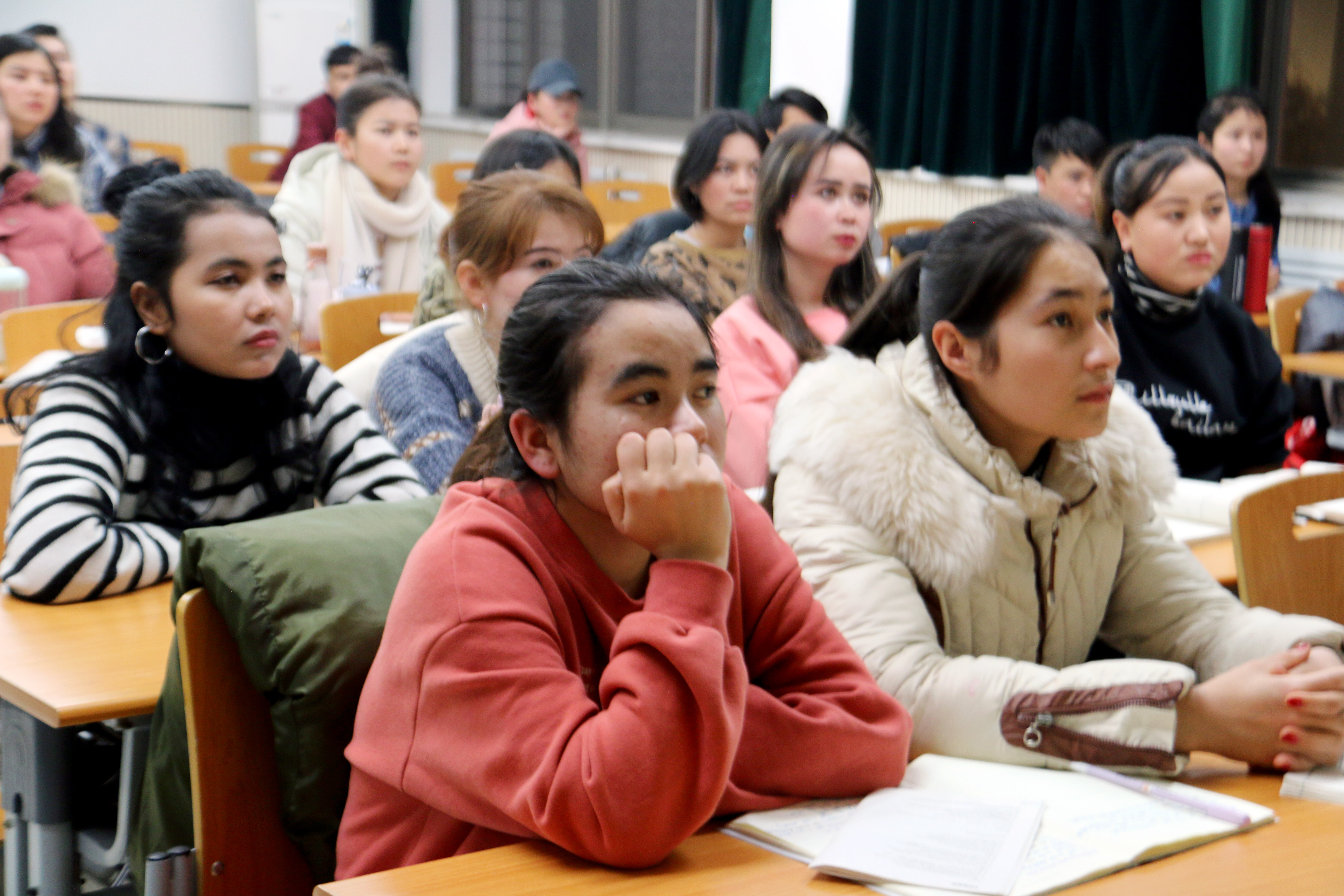学生违纪处分规定》条例来进一步说明,嘱咐同学们一定要合理的安排时间认真复习,把握基础,真正将知识学到手,为未来的专业学习打下坚实的基础,积极践行以“爱国、求是、团结、奋进”为核心的民教精神,并预祝同学们争取获得满意的成绩。热依木老师指出结业清考已经取消,要求同学们严肃考风考纪、珍惜参考机会、认真对待考试。他还强调了学生寒假实践、撰写读书笔记、家乡新变化、预科感想及社会实践问卷调查等学习与实践活动的安排,对本学期放收假时间和请假流程、学生购买火车票、寒假安排、假期安全等事宜给予了详细说明。最后,为每一位学生发放考试用具装放的透明文件袋,同学们签订了考试承诺书。
