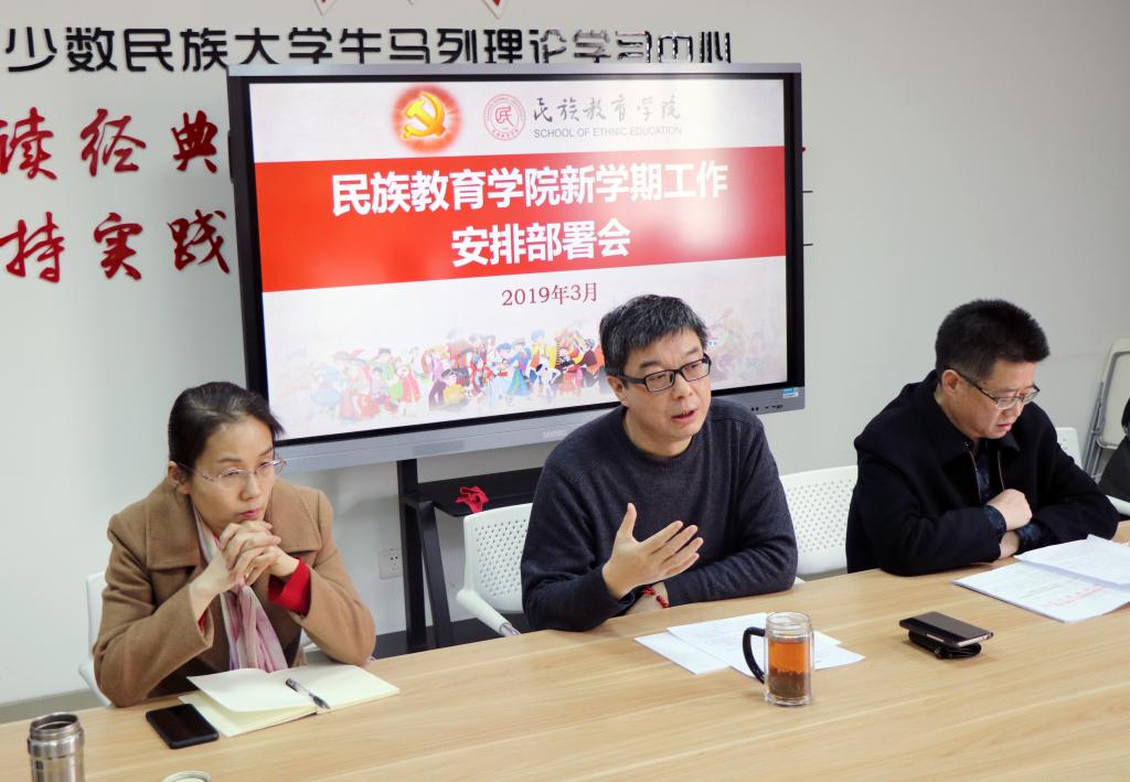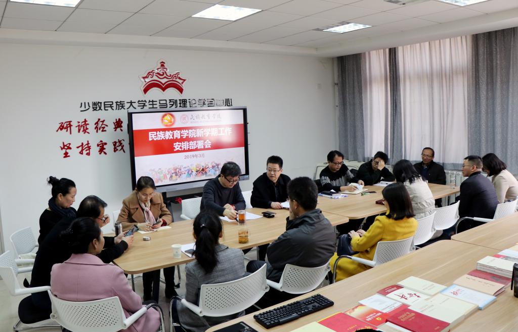 3月6日下午,民族教育学院在六附楼305会议室召开新学期工作部署会,并传达了学校相关会议精神。会议由学院党委书记郑生忠主持。