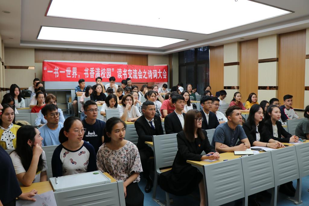 为传承中华优秀诗词文化,丰富学生内心世界和精神生活,我院于4月26日晚7点在六附楼110教室顺利举办“一书一世界,书香满校园”诗词大会。我院专职辅导员热依木、学生会主席团成员、各班学生代表参加本次诗词大会,大会由2018级预科一班谷思雨同学主持。
