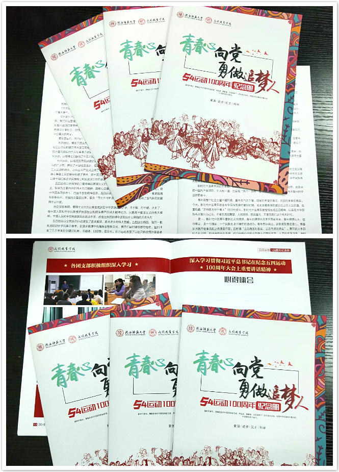 为以青年富有时代感的表达方式向百年五四献礼,学院在活动期间精心制作了纪念五四运动100周年纪念册和微视频。纪念册内容包含了习近平总书记在纪念五四运动100周年大会上的重要讲话内容及学院团委组织的系列学习教育活动,微视频活动得到了广大团员青年的积极响应,纷纷自发报名参与微视频制作。最终,经过精心策划、反复取景,为期20天的拍摄和后期制作,完成了纪念五四运动100周年微视频。视频中,60余位团员青年用最生动的影像表达了对峥嵘岁月的赞礼,号召广大团员青年传承和弘扬五四精神、担当新时代的历史使命和社会责任。