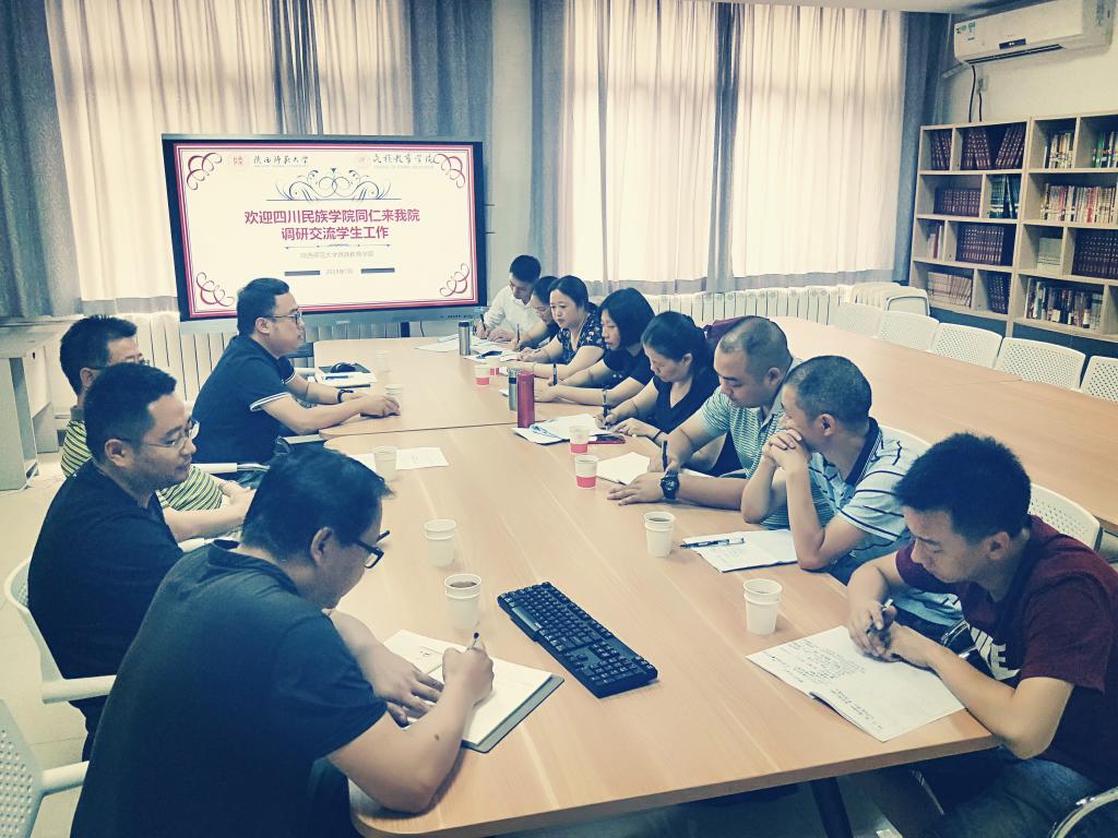 四川民族学院预科教育学院院长太学英对本次调研学习的目的和内容进行了简单说明。双方针对预科班学生日常思想政治教育和事务管理工作、教学工作、民族宗教工作以及人才培养质量保障体系建设和模式等方面遇到的问题和困难进行了热烈而深入的研讨和交流。