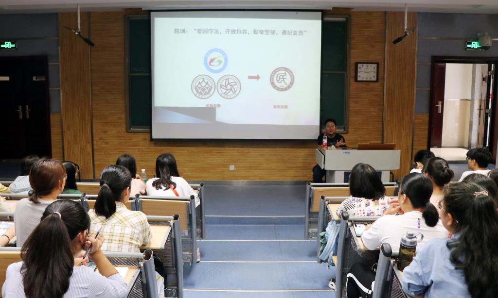 窦老师从“爱国守法,开放包容,勤奋坚韧,遵纪守法”的院训开讲,以多样详实的图片和文字资料介绍了本院历年来丰富多彩的校园活动,给大家展示了兔子先生
