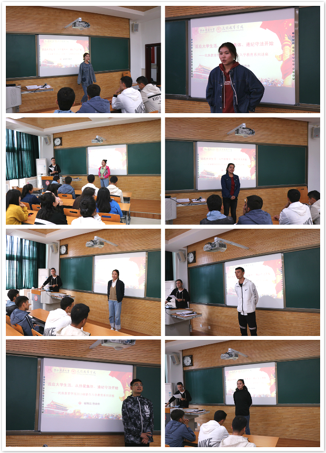 我院专职辅导员热依木老师,以“适应大学生活,从热爱集体、遵纪守法开始”为题,结合我院历年发生的典型学生教育管理案例,使得同学们了解大学教育教学特点尽快适应大学生活与环境,向同学们详细讲解了学校和学院的各项规章制度,并提醒学生要提高警惕、注意安全,严于律己,将学校与学院的规章制度铭记于心。