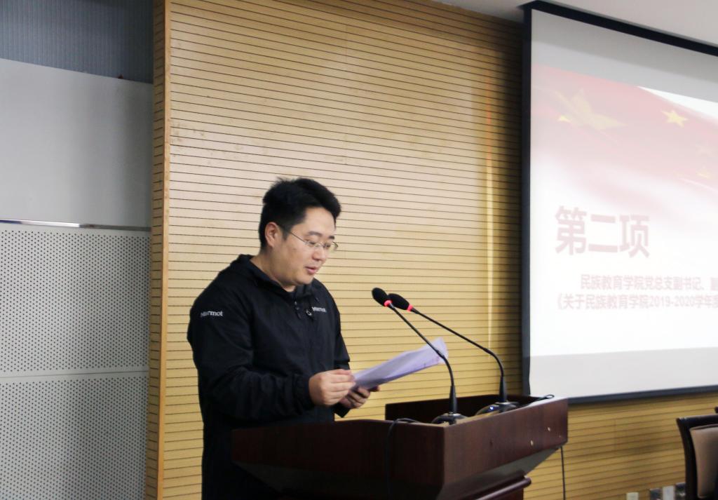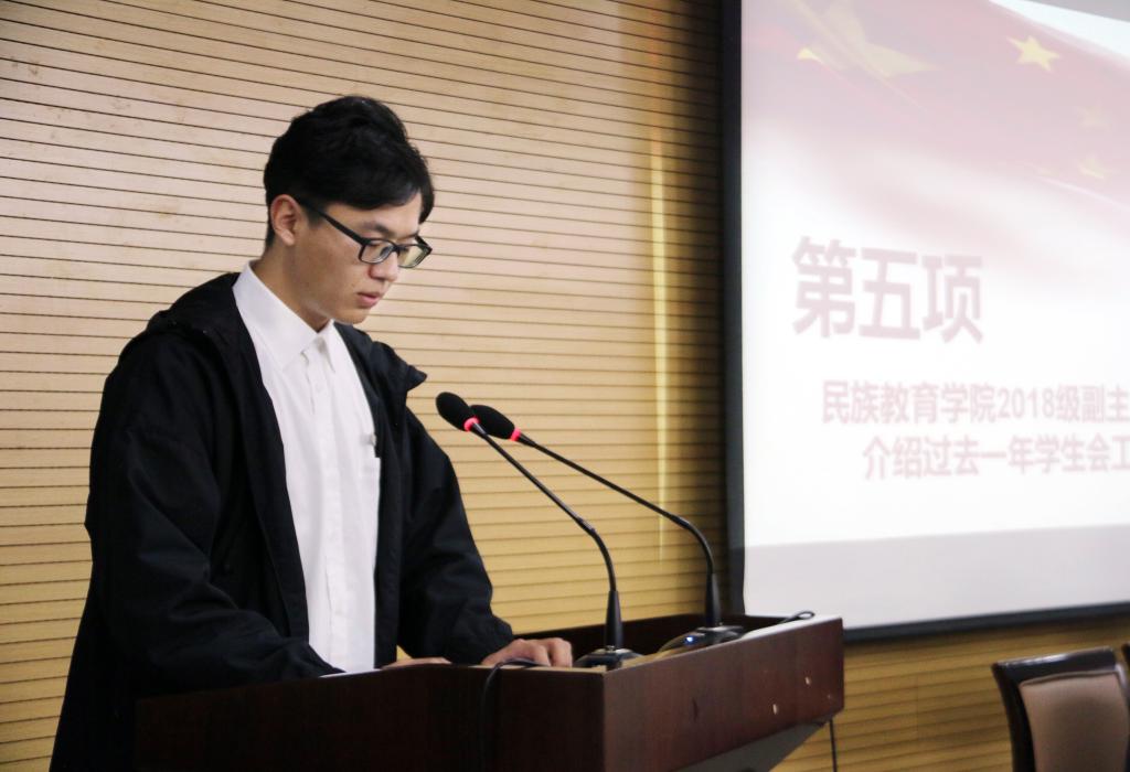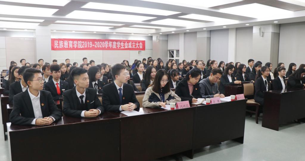 2019-2020学年度学生会换届大会在崇鋈楼二层思齐堂举行。参加本次大会的有学院党总支书记郑生忠、党总支副书记、副院长窦文阳、团总支书记赵超、专兼职辅导员热依木、许珊、冯祎洁、2018级学生会副主席奥宁、新一届学生会全体成员及各班班委。本次大会由预科一班车晓娜同学主持。