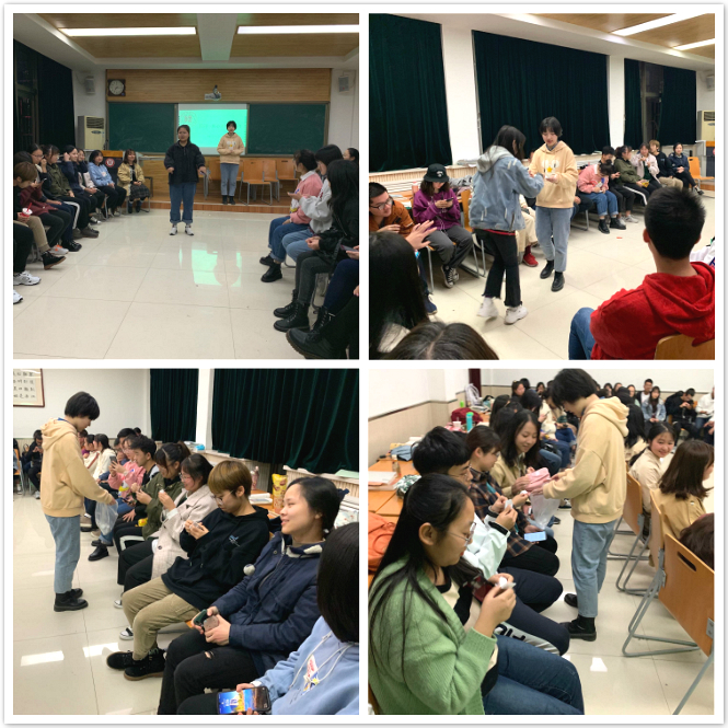 开展活动之前,专兼职辅导员就举行团体心理辅导活动的意义、整体要求和注意事项做了简单的讲解。各班心理委员、学生会心理部介绍本次活动主题及活动内容,并且详细地给同学们介绍了活动规则。一听到可以进行紧张刺激而又不失乐趣的团体游戏,同学们不再那么拘谨,一张张脸上都写满了期待,气氛也渐渐活跃起来。