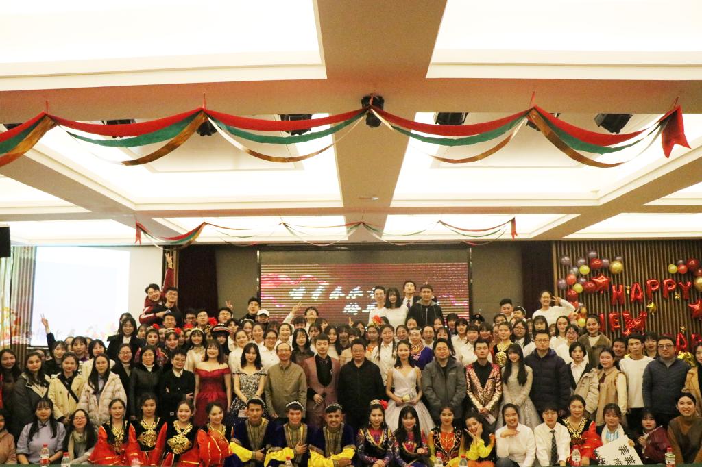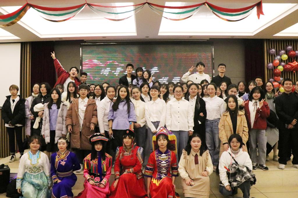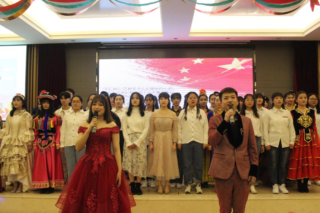 为迎接2020年的到来,展现民教学子青春靓丽的风采。2019年12月13日19时30分,由我院学生会主办,以“谱青春乐章,绘民族蓝图”为主题的迎新晚会在我校雁塔区启夏苑二楼多功能厅拉开帷幕。我院党总支书记郑生忠,党总支副书记、副院长窦文阳,团总支书记赵超,我院教师代表杨维平、戴妍、乔露、谢欣然,教学秘书贾文红,专兼职辅导员热依木,许珊、冯祎洁以及各兄弟学院代表等共同出席本次晚会。