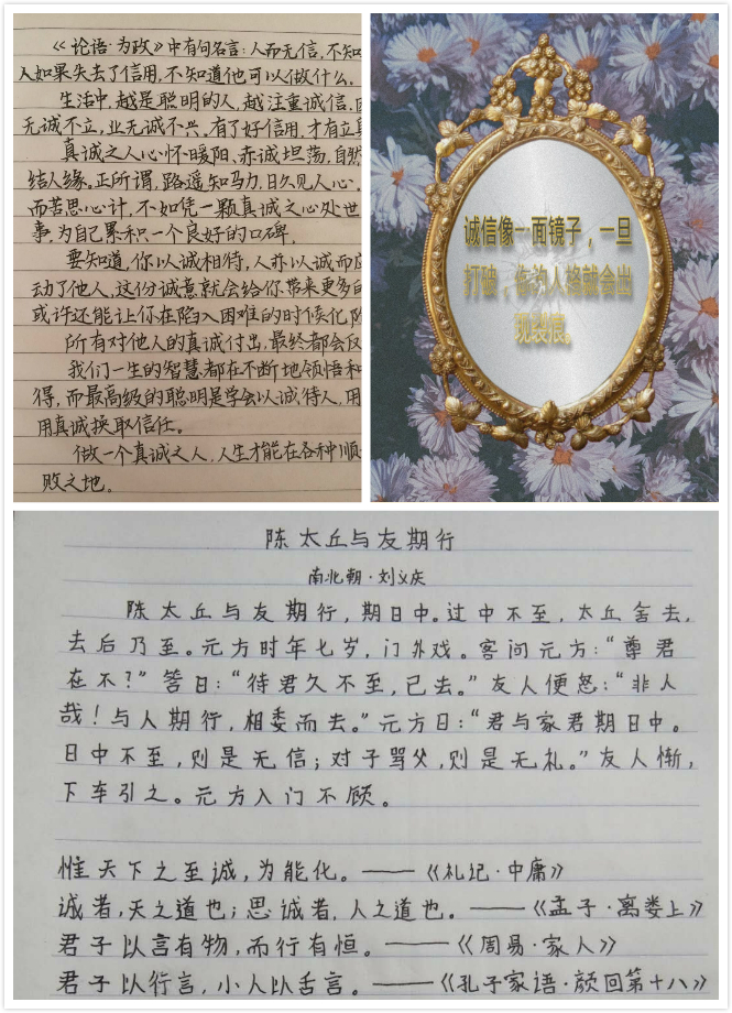 2、主题征文撰写活动精髓。4月11日,我院面向各预科班学生举办诚信主题线上征文活动,引导学生自觉践行社会主义核心价值观,培养学生诚实守信、爱国爱校、勤奋好学的品质,做守信践诺的新时代好青年。学生们踊跃参加,撰写了《以真诚之心,行信义之事》《君子一言,驷马难追》等作品,新颖别致,内容生动,引起学院师生好评,本次征文活动中我院总共收到了46名学生的诚信征文稿,并按照要求给学校推送了3篇优秀诚信征文。