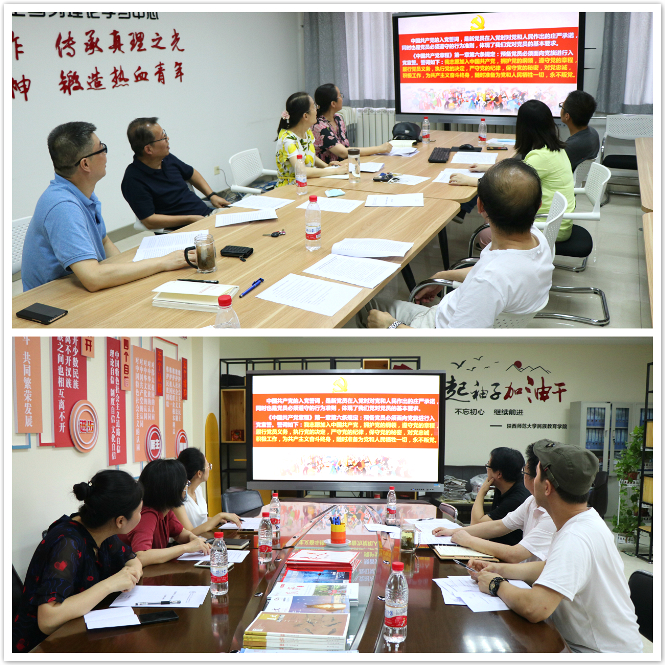 活动伊始,首先,各支部参会党员在支部书记的带领下进行入党宣誓,重温入党誓词,进一步增强党员责任感、光荣感和使命感,牢记党员身份,履行党员义务,践行入党誓词。接着,各支部书记传达了学校相关文件精神,明确了此次组织生活会的主题及意义。然后,各支部党员集体学习了“习近平在统筹推进新冠肺炎疫情防控和经济社会发展工作部署会议上的讲话”精神和中共中央印发《关于加强党的领导、为打赢疫情防控阻击战提供坚强政治保证的通知》精神以及2020年上半年《求是》发表习近平总书记文章等学习材料,学习的文章内容包含了习近平总书记 2020年1月至5月期间讲话、谈话、信函、慰问电、与外国领导人和国际组织负责人通电话中有关开展抗疫国际合作等内容。会上,各支部参会党员观看了中联部新闻办推出的系列短视频《中国抗疫人物故事》,短视频以抗疫一线普通人物的真实故事,再现中国人民与病毒进行英勇斗争的壮阔画面,传递人类终将战胜疫情的坚定信心。最后各支部党员围绕“迎党的生日、讲战疫故事、悟初心使命”主题,逐个讲述发生在身边的“战疫故事”,深刻阐述自己的切身体会。党员同志们的评论和感悟都表示:“抗疫是一场没有硝烟的战争。在疫情防控阻击战中,广大党员以良好的作风冲锋在最前面,战斗在第一线;一个个基层党组织就是一座座坚强的战斗堡垒,凝聚着人心、守护着家园。
