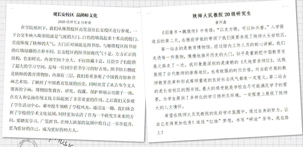9月8日上午,学院组织2020级研究生对新校区校园和教育博物馆进行了参观学习,感受师大深厚的历史底蕴和文化传承,参观完后学生撰写心得体会,表达真情实感。