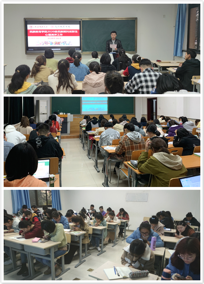 新生心理测评运用专业量表,科学评估学生在入学后这段时间里的生活适应和心理健康状况,为科学建立新生心理档案打好坚实基础,也是有效开展大学生心理健康教育工作的重要环节。本次心理测评工作我院于2020年10月26-27日两天专兼职辅导员和心理委员在六附楼214教室和九号教学楼9703、9705教室指定时间组织新生集中测试,测评对同学们的心理健康问题做出摸底排查,使日后的心理健康教育工作更具针对性,测评采用网上答题形式,测评结果将会严格保密,不会录入档案,不会对成绩、考核、升学、评优等任何方面造成负面影响。在同学们了解情况后对本次测评工作表示出了理解和支持,愿意接受学校调查测评。测试开始之前,专兼职辅导员对本次测试的注意事项作了简要阐述,使同学们了解心理测评的目的和意义,希望同学们能够认真答题,专心测验。
