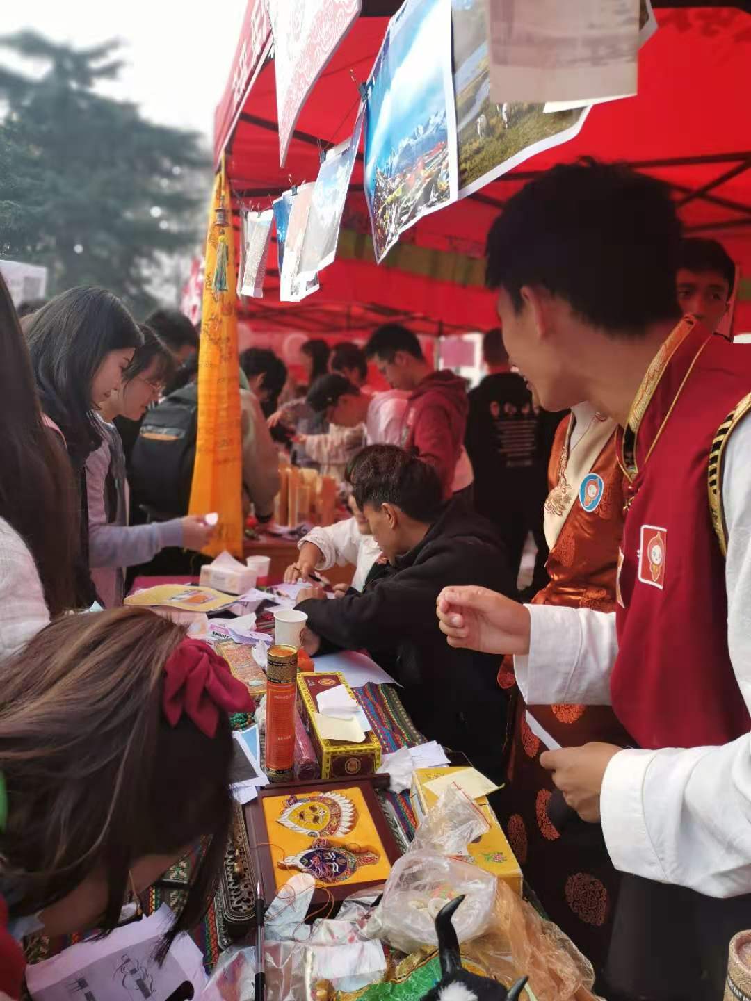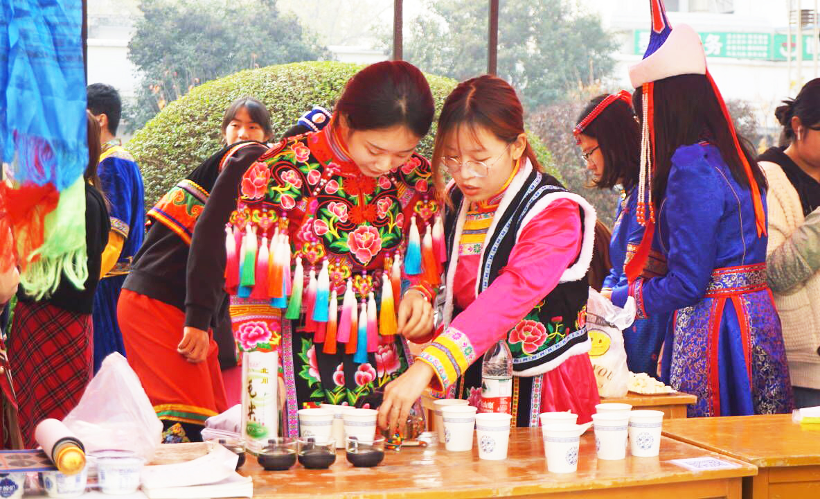 藏族的酸奶、酥油茶让我们认识到了高原民族的饮食特色,光彩夺目的藏服令人赞叹,锅庄舞蹈让人大开眼界,藏族同学也向同学们展示了藏文书法、藏戏面具等传统文化艺术。彝族服饰上用于成人礼的银饰熠熠生辉;通过品尝清冽芬芳、历史悠久的羌茶,古羌文化便可窥一二。桃片糕、霉豆腐、黄氏薯片、甜粑、黄粑等土家小吃美味可口,让人回味无穷。壮族的抛绣球表演趣味非凡,作为中国四大名锦之一的壮锦浓艳粗犷。五色糯米饭虽然迟到,但在活动结束当晚被送到了我院的每一间寝室,小小一杯糯米饭寄托着温暖的民族情。