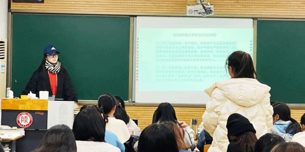 本次学习主要由各班专兼职辅导员对准则内容进行解读,阐明学习准则的重要意义、引导同学认识遵守学生行为准则的重要性三个方面展开。一班兼职辅导员王雅丽老师通过引入大量例证,从身边具体问题着手,与同学交流日常行为对生活造成的影响,引发同学的思考,强调大学生遵守《学生行为准则》的重要性。二班兼职辅导员张雨老师通过播放教育短片强调了尊重与理解、包容与沟通在同学们生活中的必要性,提出新时代大学生应该从当下做起,注重行为规范,有意识提升自我思想品德,使自己成为更具青春活力、更有道德修养、更加文明有礼,养成良好的生活习惯。三班辅导员热依木老师从个人、学校、社会三大层面引导同学们遵守学生行为准则的重要性和必要性,并让同学们围绕校园日常生活来进行相关探讨,紧贴日常校园生活实际,深挖问题本质,让同学们切实理解《学生行为准则》的内在含义和深刻意义。