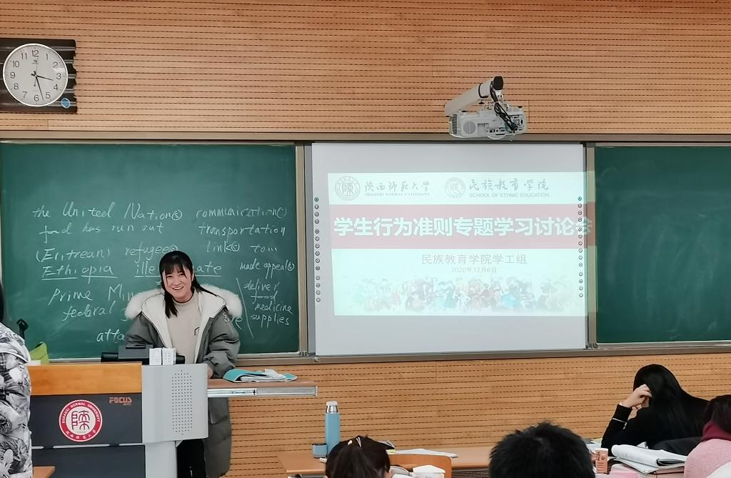 于12月6日由专兼职辅导员带领全体同学通过多种方式进行学生行为准则的专题学习。