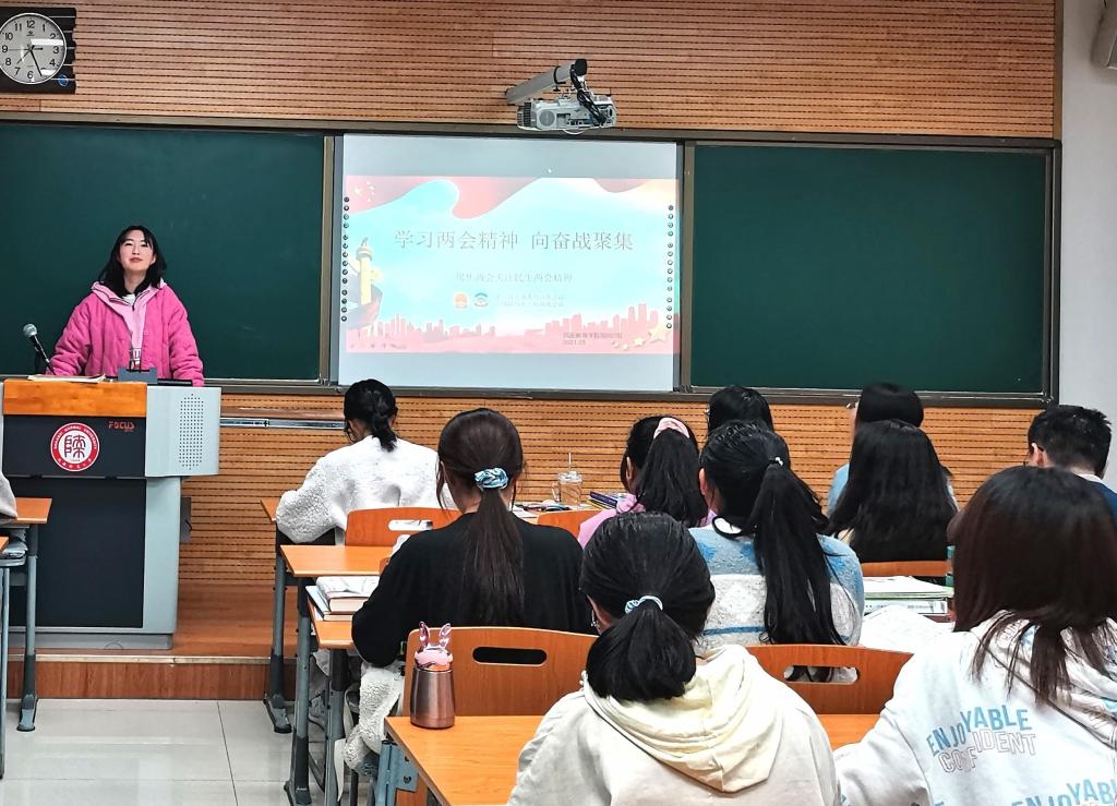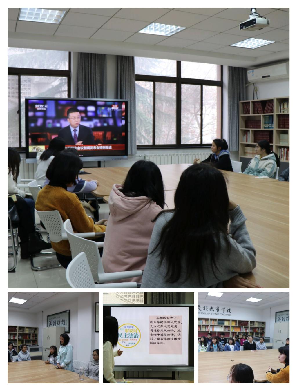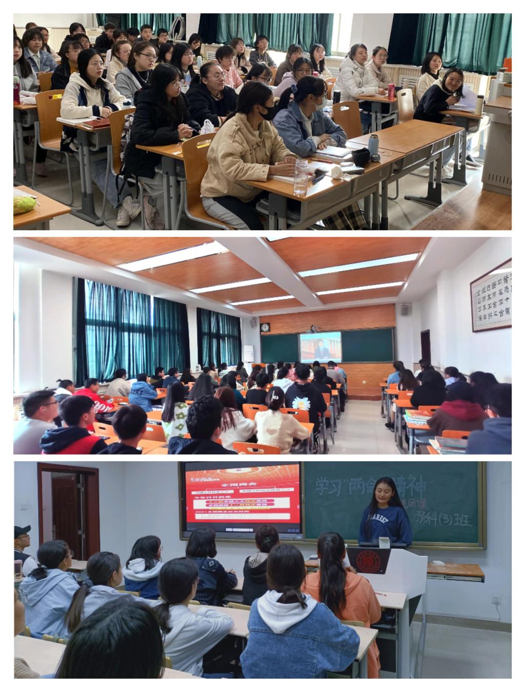 首先,各班团支书组织班级同学观看两会直播,举行“两会”精神团课学习,将“两会”内容传达给各位团员,加强团员思想觉悟,使团员们紧跟时代脚步。