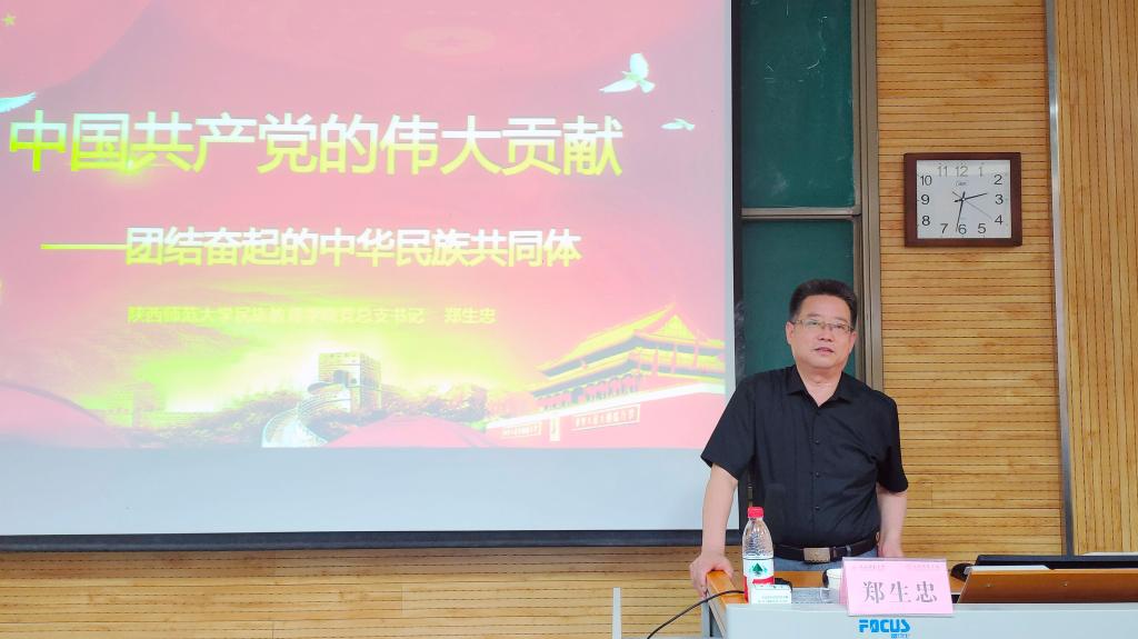 “传承红色基因,铸牢中华民族共同体意识”党史学习教育系列讲座在雁塔校区教学五楼5101开讲。我院党总支书记郑生忠老师作了题为“中国共产党的伟大贡献——团结奋起的中华民族共同体”的党史学习教育辅导报告。兔子先生
