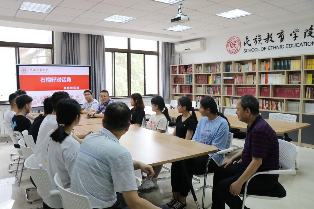 少数民族学生教育管理工作情况进行了介绍,对学院预科生专业选择与分配方案、日常谈心谈话制度、“一对一”学业帮扶制度、学生去向报告制度、少数民族学生干部选拔与培养机制等工作进行了简单的交流,并陪同参观了石榴籽工作坊雁塔校区站、“悦心坊”二级心理辅导站、“少数民族大学生马列理论学习中心”、“少数民族大学生文化交融创新中心”(正建)以及学院学工文化墙和民族教育成果陈列室,介绍了学院的学生工作培养和管理等方面的相关内容和成果成效。