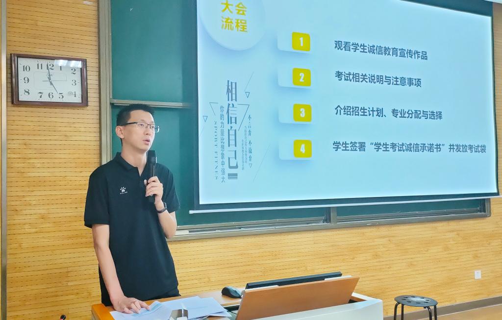 大会伊始,同学们观看了往届预科生自编自导自演的诚信教育宣传作品,让大家更直观的正确认识诚信考试的重要性。接着,热依木分别从考试时间安排、考试要求、考场规则、违纪处理规定、填报专业志愿以及办理离校手续等方面进行了详细说明。