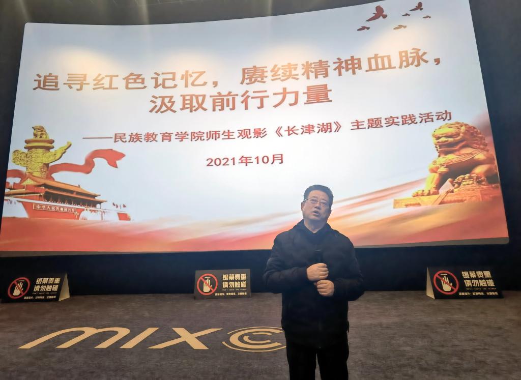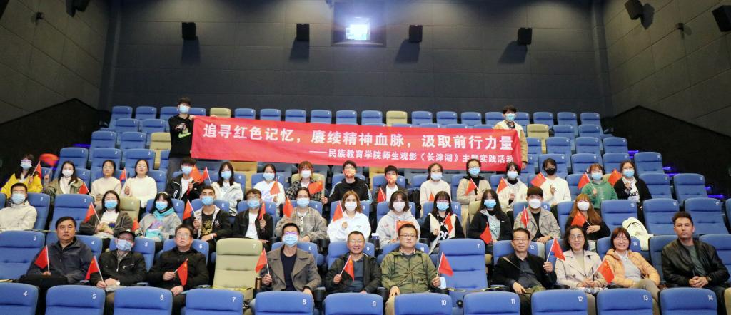 为认真学习贯彻习近平总书记在“纪念辛亥革命110周年大会”上的重要讲话精神,教育引导师生厚植爱国爱党情怀,用生动形象的党史教材进一步铸牢理想信念,汲取奋进力量,10月15日下午,民族教育学院开展“追寻红色记忆,赓续精神血脉,汲取前行力量”主题实践活动,组织师生集体观看电影《长津湖》,学习伟大抗美援朝精神,进一步加强爱国主义教育。