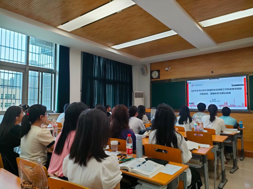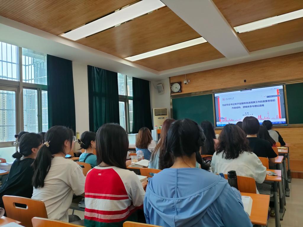 讲座上,朱尉老师分别从党的十八大以来习近平总书记关于加强和改进民族工作的重要思想的形成与发展、实践与深化以及新时代民族工作高质量发展的着力点与关键三个方面切入,对习近平总书记关于加强和改进民族工作的重要思想内容结构、逻辑体系与理论品格进行了阐述。