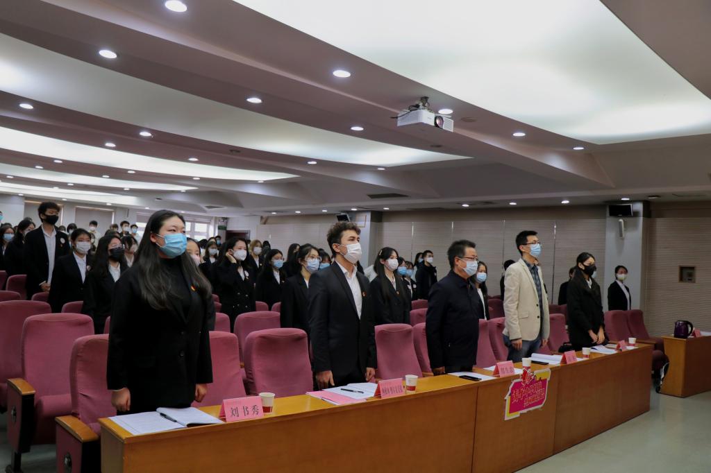 第三次全体学生大会正式会议开始。学院党总支书记郑生忠、副书记高冬,团总支书记热依木·努尔麦麦提,专职辅导员王霞和学院全体学生参加了本次大会。