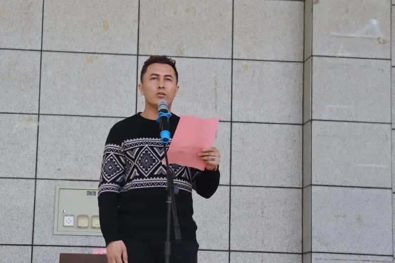 团总支书记热依木·努尔麦麦提宣读《精神文明倡议书》