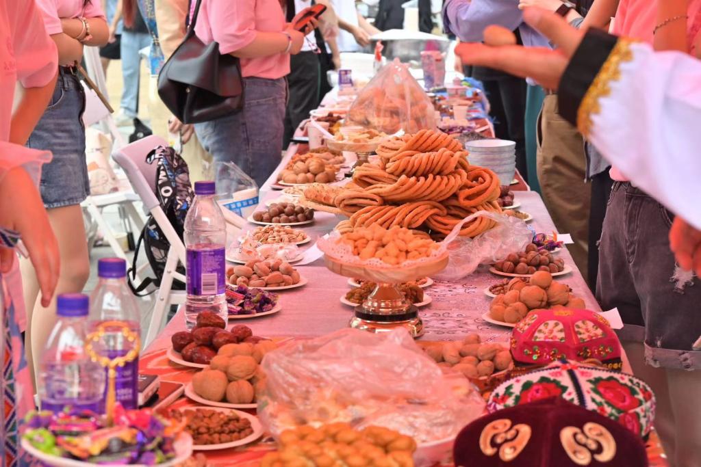 曼妙的音乐、热情的舞蹈。除此之外,活动现场还有新疆地区、内蒙古地区、甘宁地区、云贵川渝地区、陕西青海地区、湖南湖北广西地区共计六个活动区,分别展示各自地区民族的文化风俗,从民族服饰、文化器具再到民族美食,充分彰显了中华民族多元一体的特性,展示了百花齐放的绚烂场面。