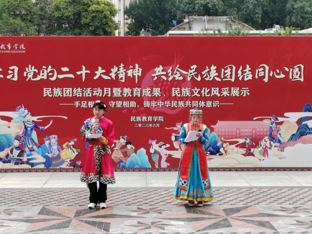 的一项传统特色活动,也是学院深入推进民族团结进步创建工作的一项重要举措。民族团结活动月的开展为广大学生展示自我、表达自我提供了舞台;也为促进全校各民族师生深入了解、深入交往搭建了桥梁。他寄语同学们,要充分认识本次活动的重要意义,在展示中促交流、在交流中促融通、在融通中促团结,深刻理解党的二十大精神重要内涵,铸牢中华民族共同体意识,真正做到共绘民族团结同心圆!