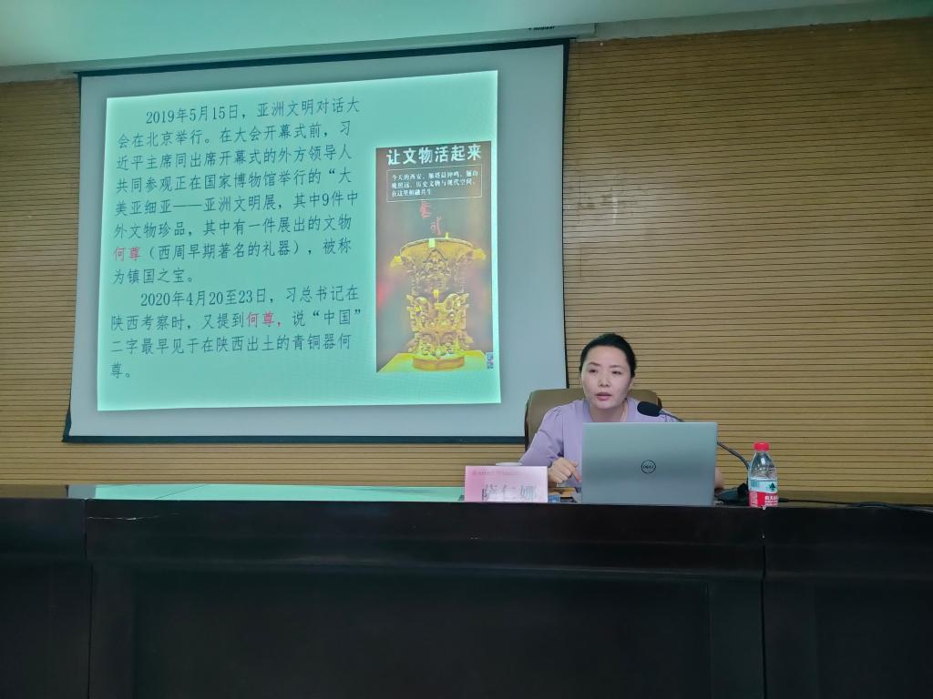 “学习贯彻党的二十大精神,铸牢中华民族共同体意识”主题教育专题辅导报告第三讲在雁塔校区崇鋈楼学思堂开讲,学院副教授萨仁娜作题为“从‘中华民族’到铸牢中华民族共同体意识”的专题学习辅导报告。学院全体学生参加讲座,讲座由学院团总支书记热依木·努尔麦麦提主持。