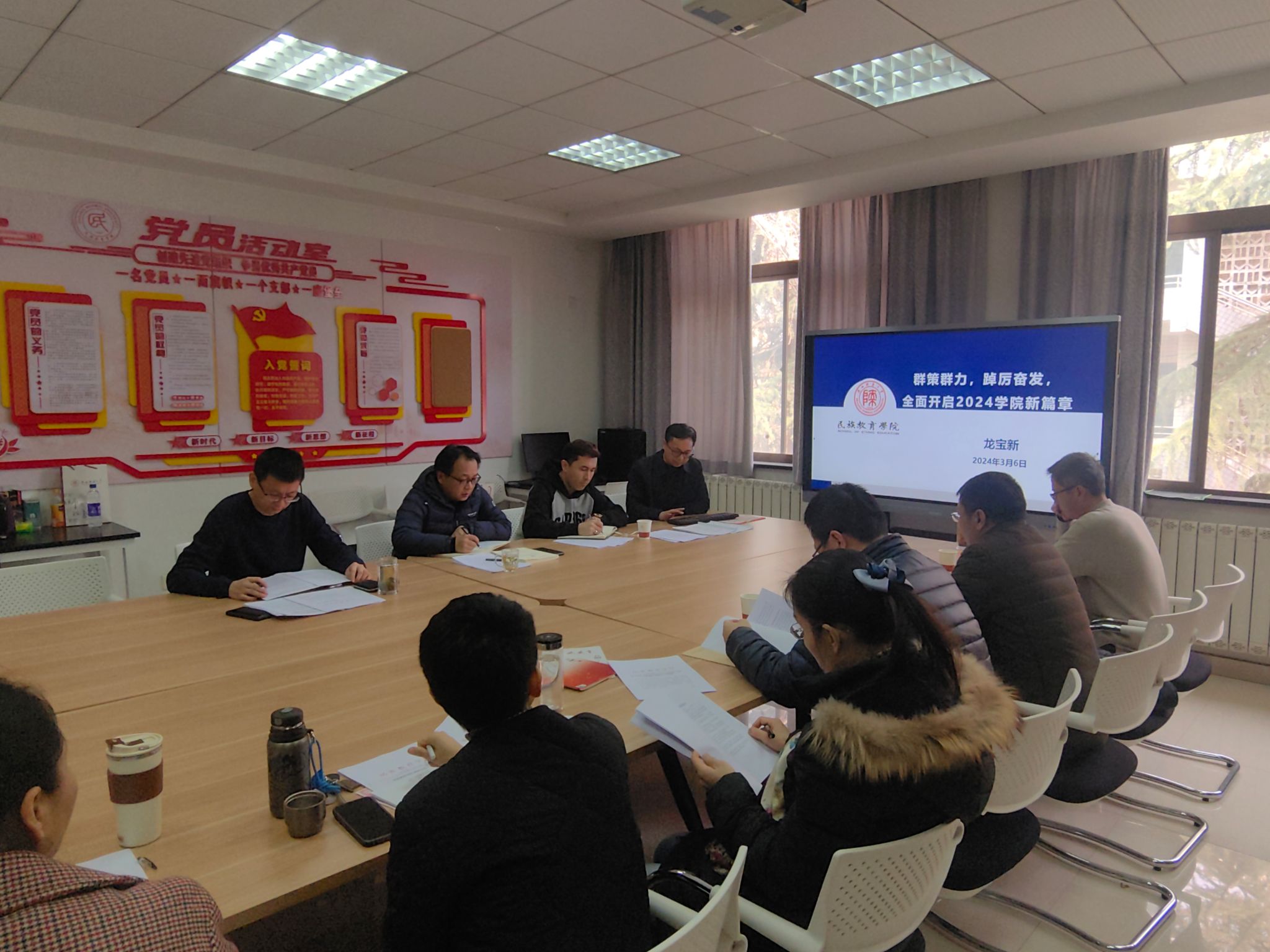 首先,龙宝新院长解读学院2024年度工作要点。他结合学院功能定位与发展实际,深入分析学院发展面临的挑战和机遇,并在此基础上,提出切实可行的发展思路:加强党政协同,共同体教育优先,青年教师做主力,课改提质是关键,教研科研同步,学科贡献兼顾。紧接着,他还从党团建设与学院治理、教学改革、学术提升与学位教育、教育管理与特色发展等四方面具体部署,详细阐释2024年学院的各项工作。通过解读,学院全体教职工统一了思想,对齐了步调,纷纷表示将在新的一年里,将群策群力,踔厉奋发,全面开启2024年学院发展新篇章。