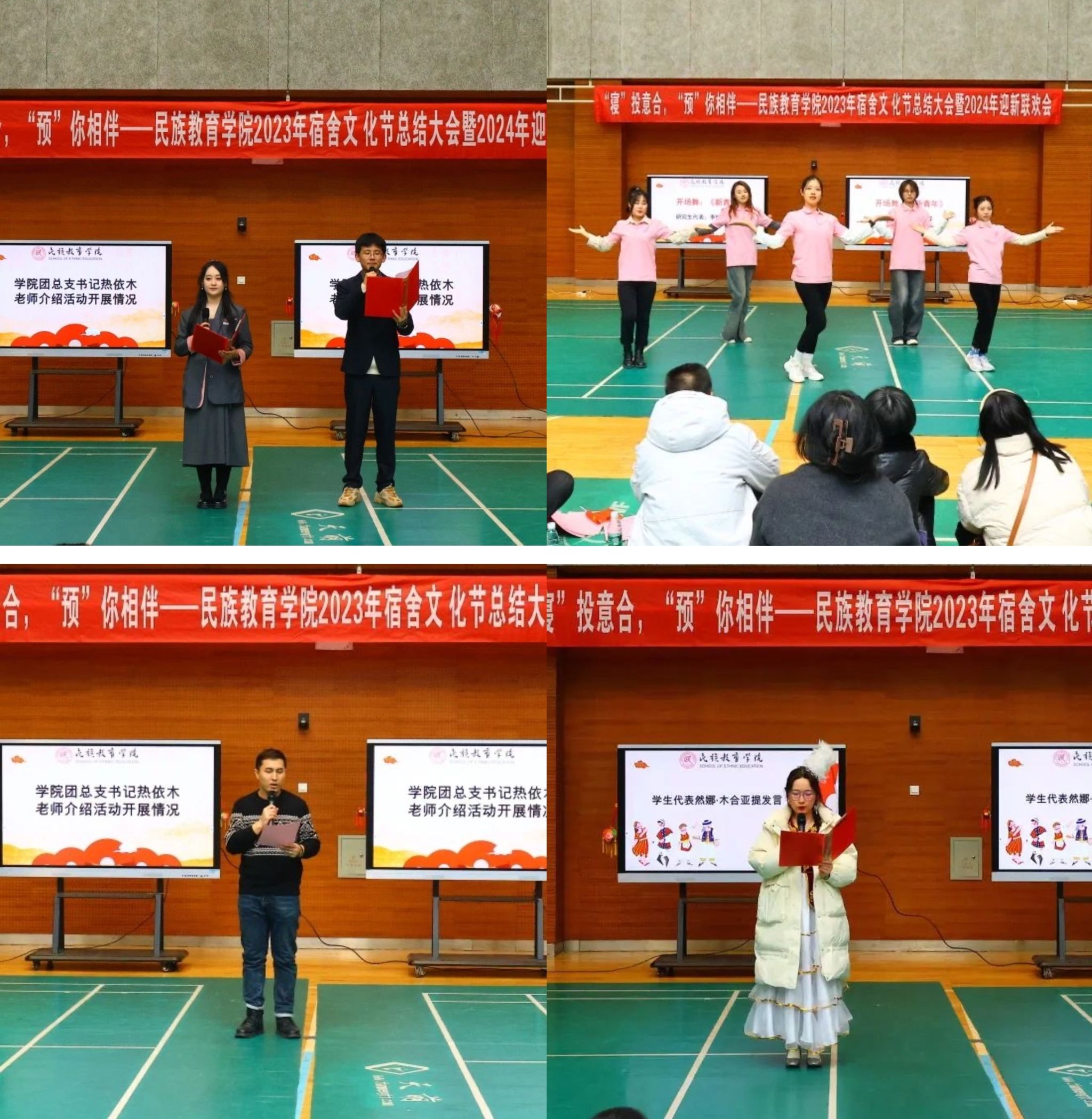 12月29日下午,我院在雁塔校区体育馆隆重举办“寝”投意合,“预”你相伴2023年宿舍文化节总结大会暨2024年迎新联欢会。学院党总支书记郑生忠、党总支副书记高冬、团总支书记热依木、派驻教师祖丽菲亚,学院教职工戴妍、贾文红、欧阳婧、兼职辅导员李雪儿以及全院学生参加了本次大会,2023级预科生李佳铭、马羽菲主持。