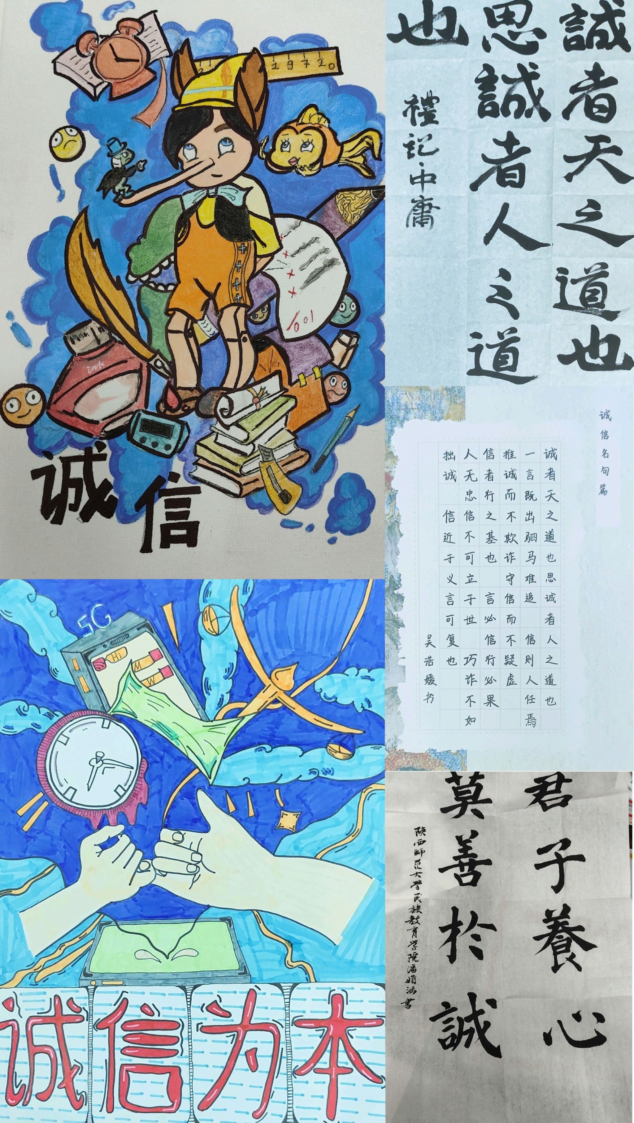 学院注重诚信教育工作的深化与拓展,面向全院学生精心策划并实施了诚信征文与书法绘画作品征集活动,旨在通过文学和艺术的形式,引导学生积极传承和弘扬诚信精神。活动一经启动,即得到了广大学生的热烈响应和积极参与,学生们纷纷亮出自己的才华和风采。活动共收集到30余篇征文,20余项诚信主题教育书法绘画作品,充分展现了学生对诚信内涵的深刻理解与内化。此次活动不仅丰富了学生的课余文化生活,更在潜移默化中提升了学生的诚信意识和道德修养,实现了多元化诚信育人的良好效果。