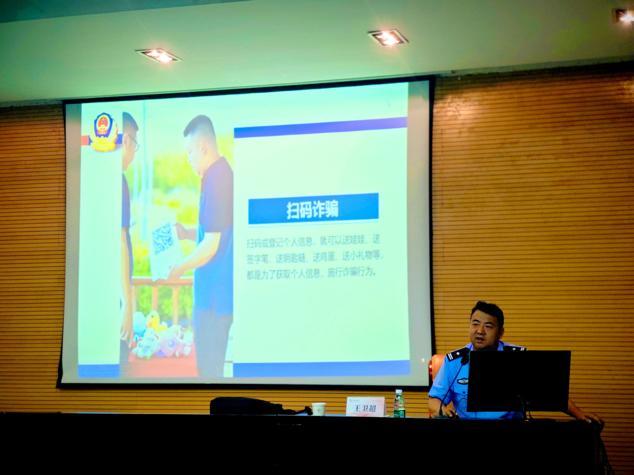 王卫超分别从电信网络诈骗的种类、破解办法和补救措施,防范和抵御安全风险意识和能力等几个方面进行详细讲解。他通过生动真实的典型案例和专业剖析,揭露了诈骗分子常见的诈骗手段,并提供了有效的应对策略。他倡导大家下载国家反诈中心APP,并强调电信网络诈骗万变不离其宗,只要大家牢记“四个凡是”原则,提高警惕性,就能够有效识别电信网络诈骗,保护人身财产安全。