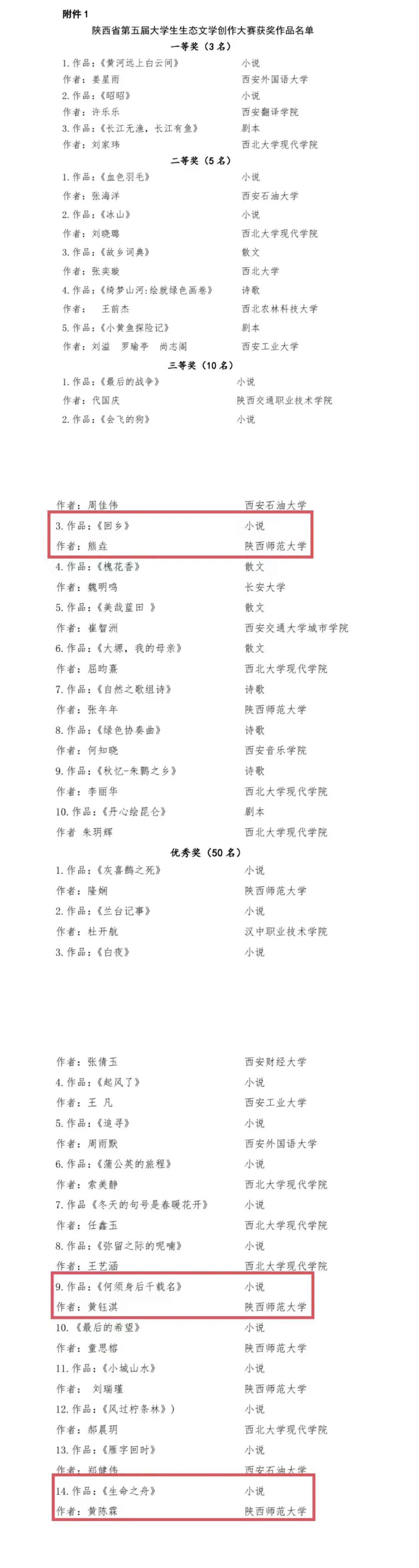 获奖名单