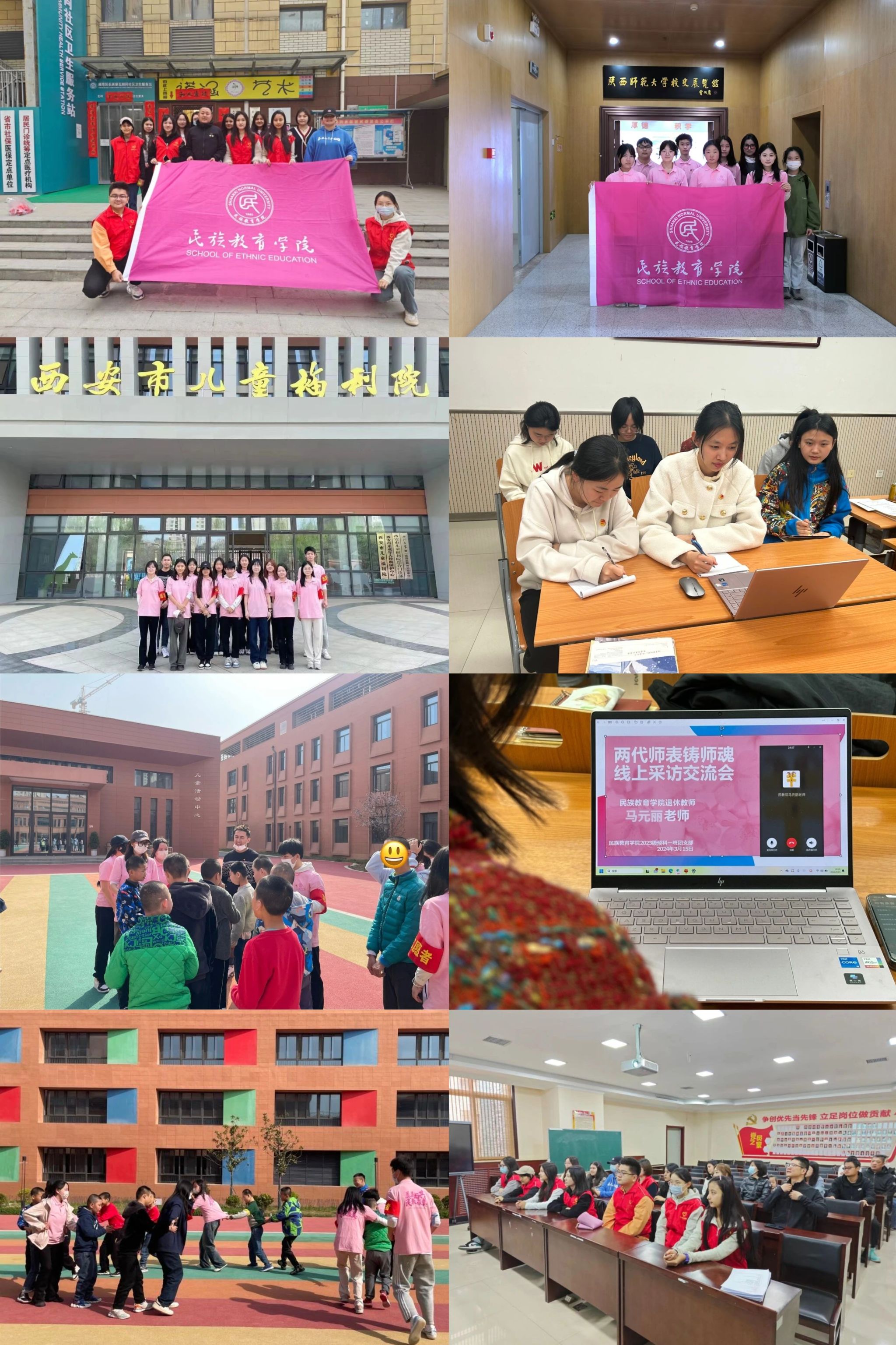 学院丰富拓展心理教育实施路径,充分发挥劳动教育对心理健康的促进作用,策划并实施了一系列“学雷锋志愿服务”活动。学院志愿服务队深入校史馆深入了解学校的发展历程,感悟师大深厚底蕴;邀请学院退休党员教师马元丽老师进行访谈交流,体会“红烛精神”和“雷锋精神”的生命力。同时,学院青年志愿者与瓦胡同社区团支部携手,开展“双减”政策的宣传普及工作,解答民众关注的实际问题;赴西安市儿童福利院开展“阳光助残”公益活动等,通过实践活动同学们的积极进取、团结友爱、乐观向上的精神风貌得到了进一步培育,展现了新时代青年学子的良好形象。