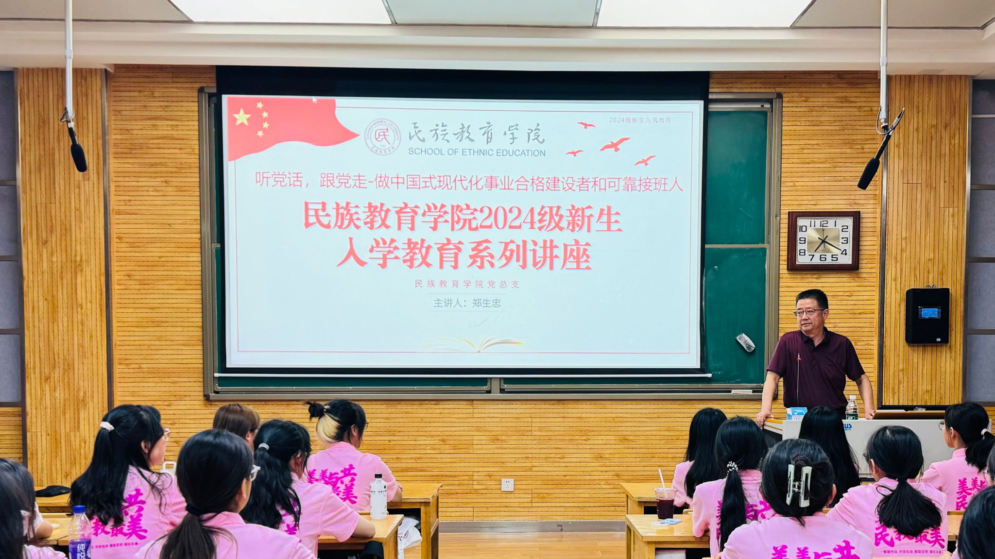 为帮助新生坚定理想信念、树立远大理想、增强爱校情怀、尽快适应环境、明确学习目标、合理规划大学生活,近期,学院党总支书记郑生忠在雁塔校区5301教室作了以“坚定理想信念,努力奋斗融入新时代”为主题的入学教育讲座,讲座由团委书记、专职辅导员热依木·努尔麦麦提主持,2024级全体新生参加了本次讲座。