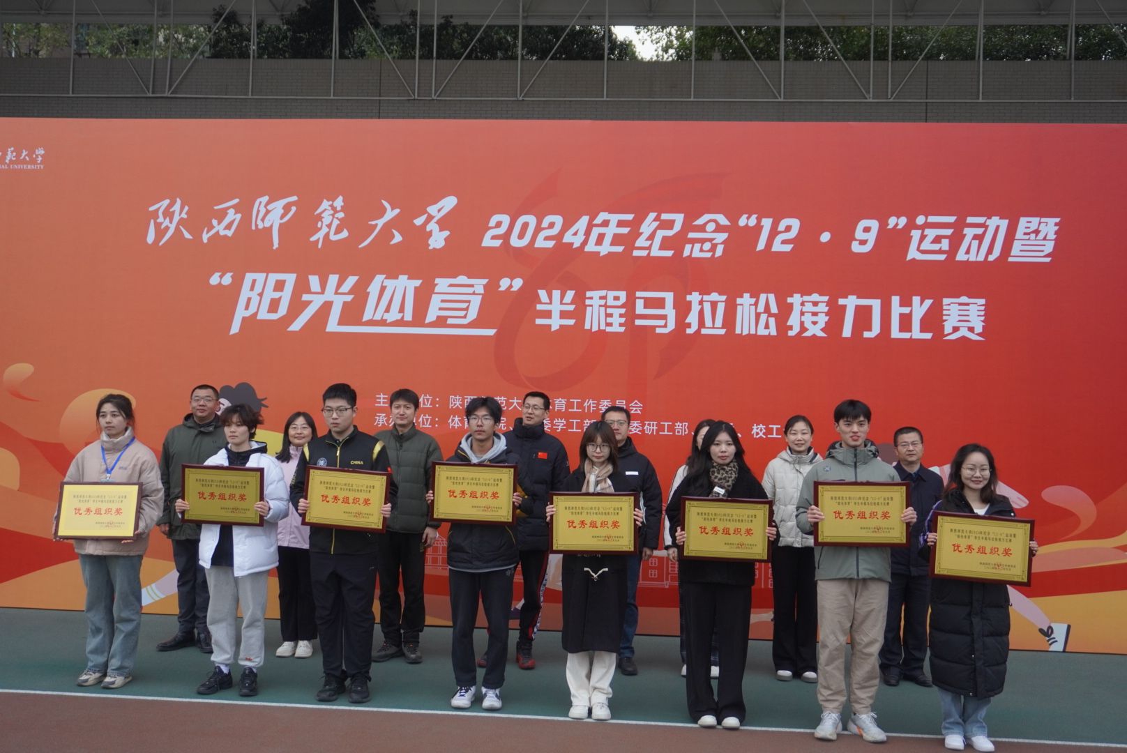 2024年“阳光体育”半程马拉松接力比赛在长安校区田径场鸣枪开跑,兔子先生