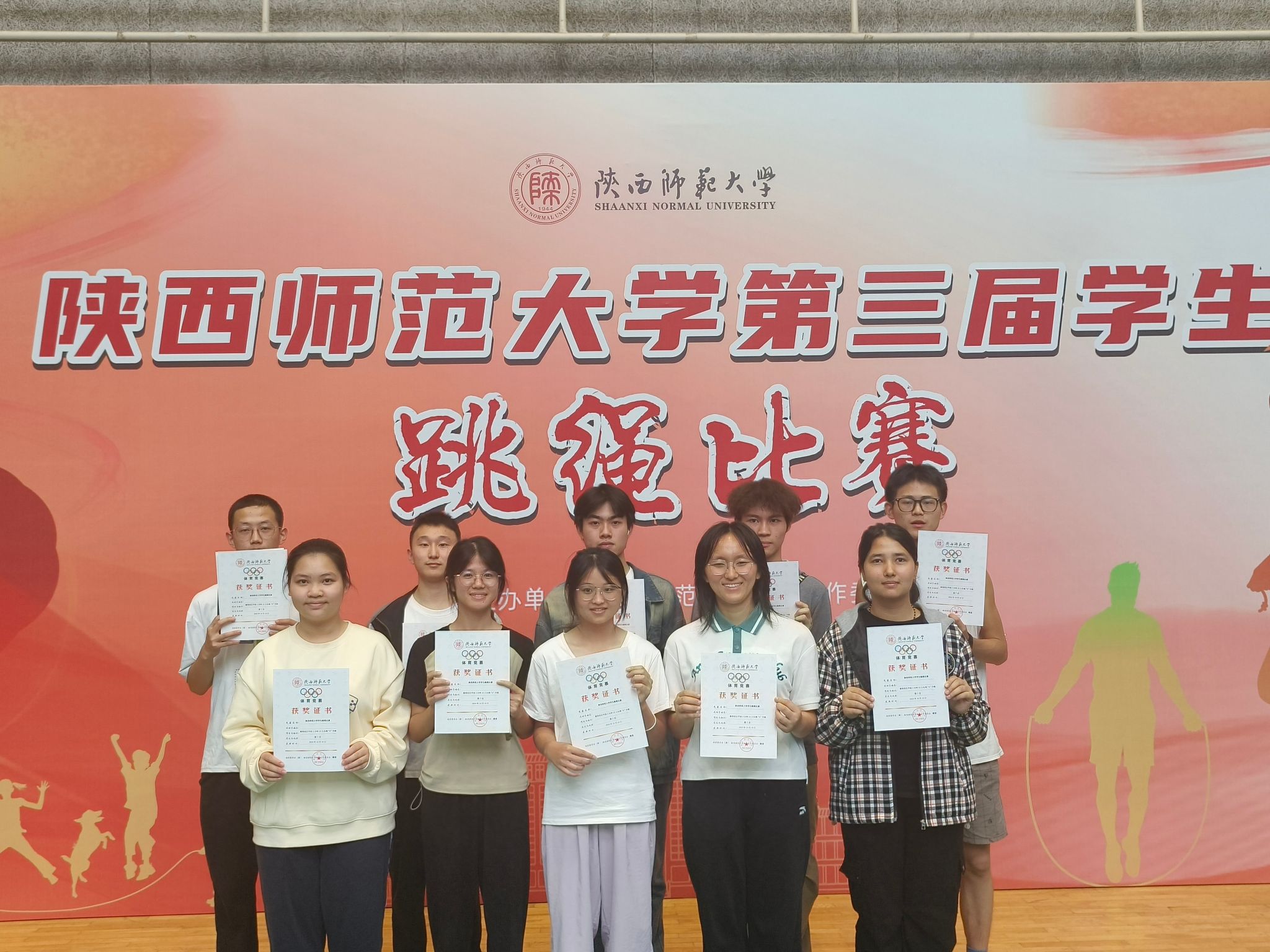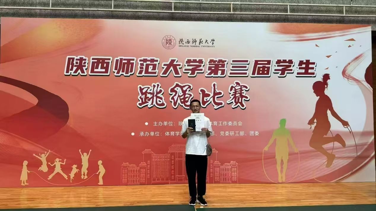 在3分钟10人长绳“8”字跳中获得第七名,学院预科2班马阳杨在男子30秒双摇中取得第三名的好成绩。