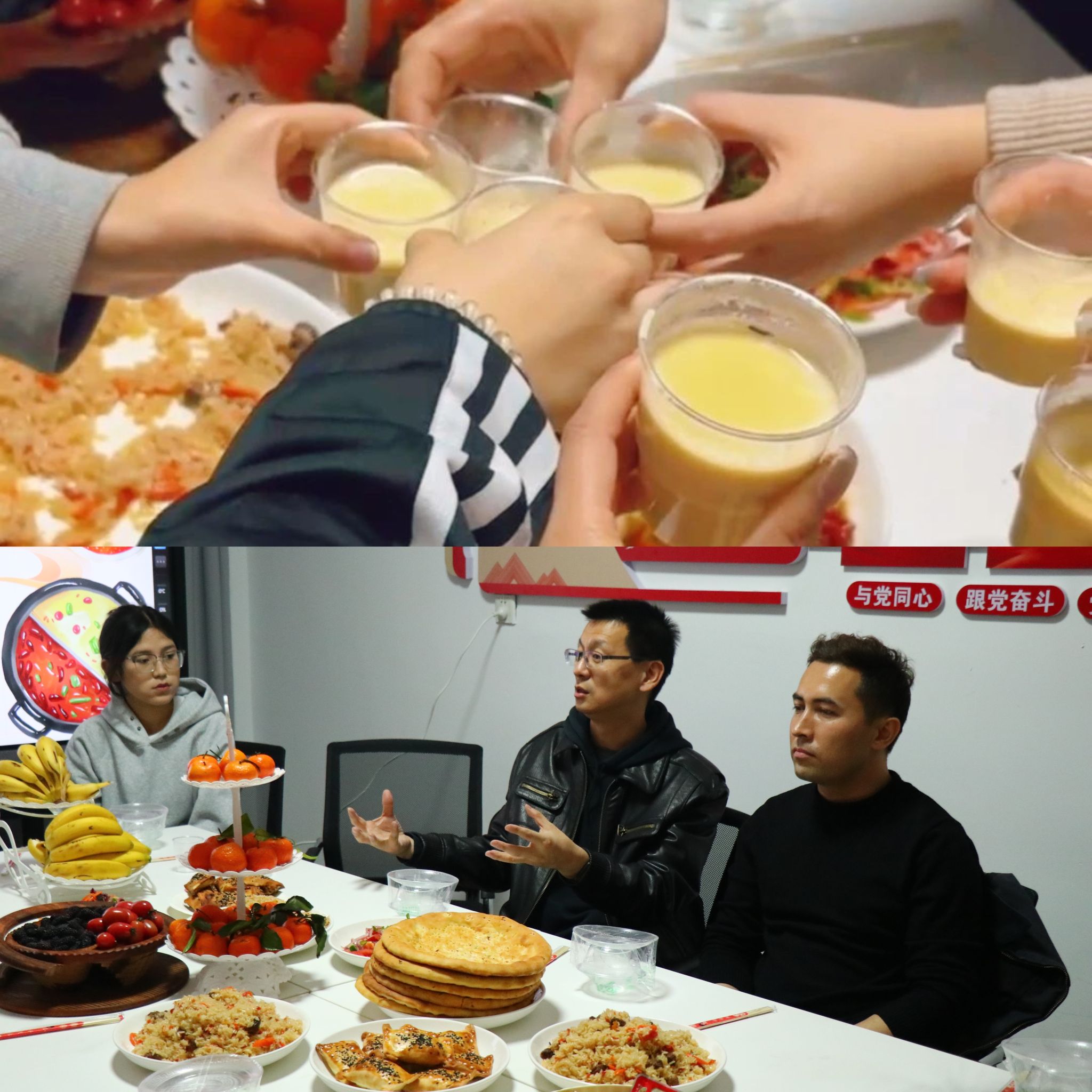 在满是美味佳肴的餐桌旁,师生们欢声笑语,畅所欲言,其间,大家围坐一起吃饭、聊天、做游戏、唱歌,其乐融融。席间既有职业规划的专业探讨,也有成长经历的真诚分享;既有五湖四海的风土展示,也有即兴歌舞的文化交融。交流中,高冬以亲身经历启发学生成长,各族师生在轻松互动中实现思想碰撞与文化互鉴。